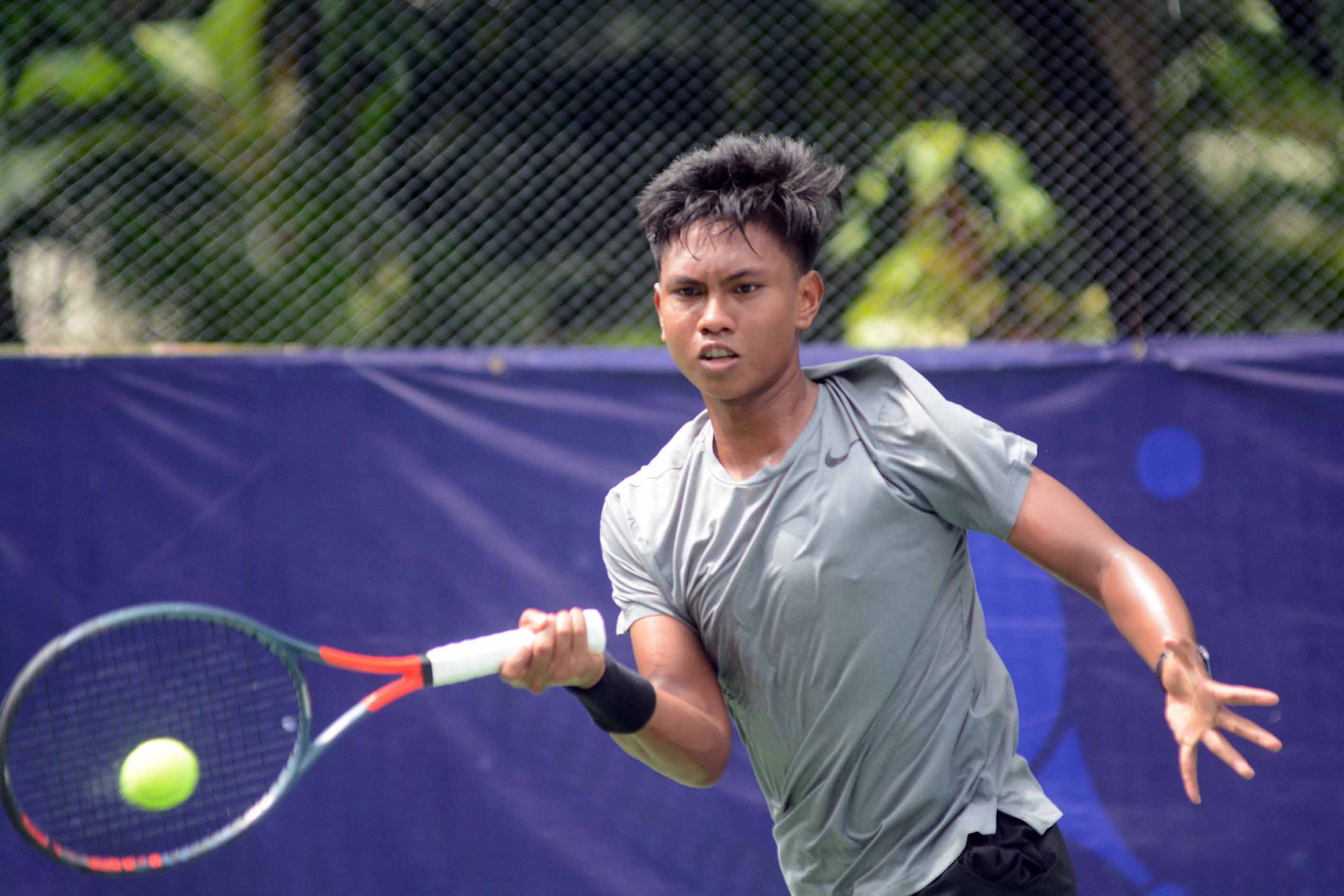 Petenis Jawa Timur, M. Gunawan Trismuwantara dalam pertandingan babak pertama turnamen nasional Mandiri Tennis Open 2022 di lapangan tenis The Sultan Hotel & Residence Jakarta, Rabu 9 Februari 2022. (Foto;HO/DwiAri Setyadi/tennisindonesia.com/sportsmoment.id)