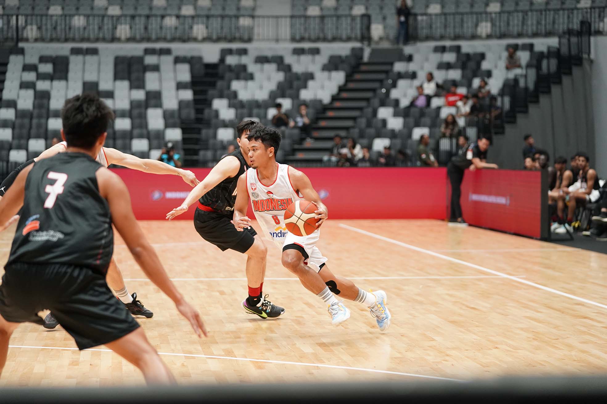 Yudha Saputera, dalam aksinya di Timnas bola basket Indonesia di Indonesia International Basketball Invitational (IIBI) saat melawan juniornya Indonesia Patriots. Timnas Bola Basket mengalahkan Patriots 82-56 di Indonesia Arena, Gelora Bung Karno Senayan, Jakarta, Rabu (2/8/2023) petang.