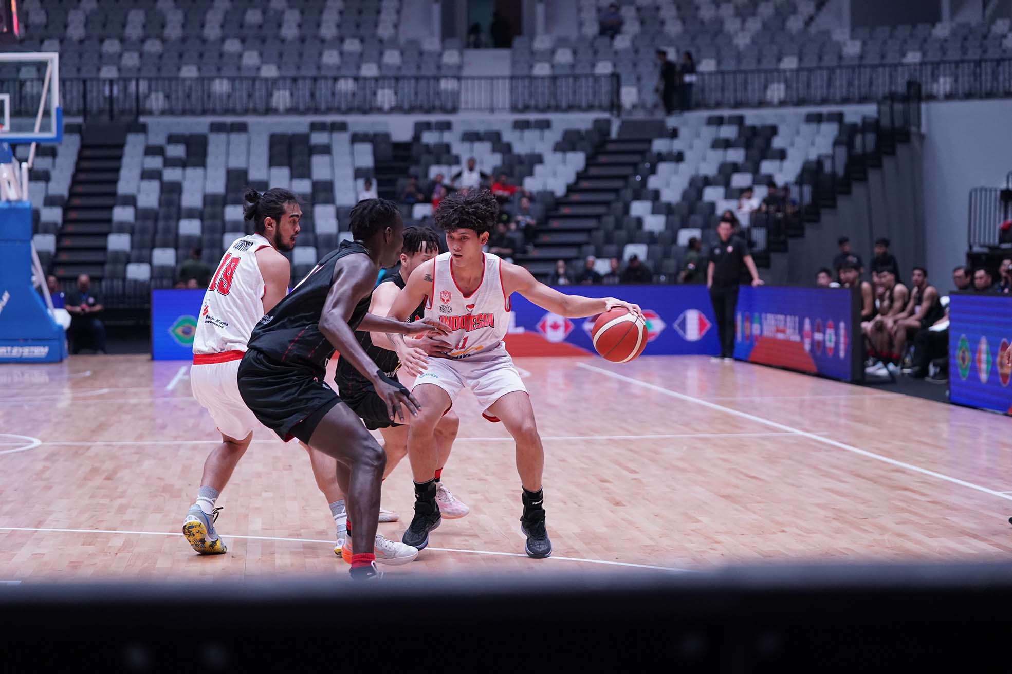 Althof Dwira Satrio, dalam aksinya di Timnas bola basket Indonesia di Indonesia International Basketball Invitational (IIBI) saat melawan juniornya Indonesia Patriots. Timnas Bola Basket mengalahkan Patriots 82-56 di Indonesia Arena, Gelora Bung Karno Senayan, Jakarta, Rabu (2/8/2023) petang.