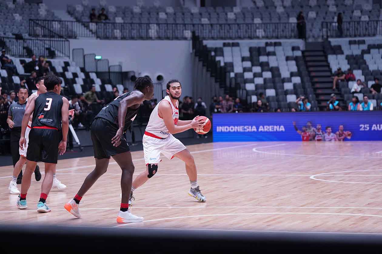 Muhammad Reza Fahdani Guntara, dalam aksinya di Timnas bola basket Indonesia di Indonesia International Basketball Invitational (IIBI) saat melawan juniornya Indonesia Patriots. Timnas Bola Basket mengalahkan Patriots 82-56 di Indonesia Arena, Gelora Bung Karno Senayan, Jakarta, Rabu (2/8/2023) petang.