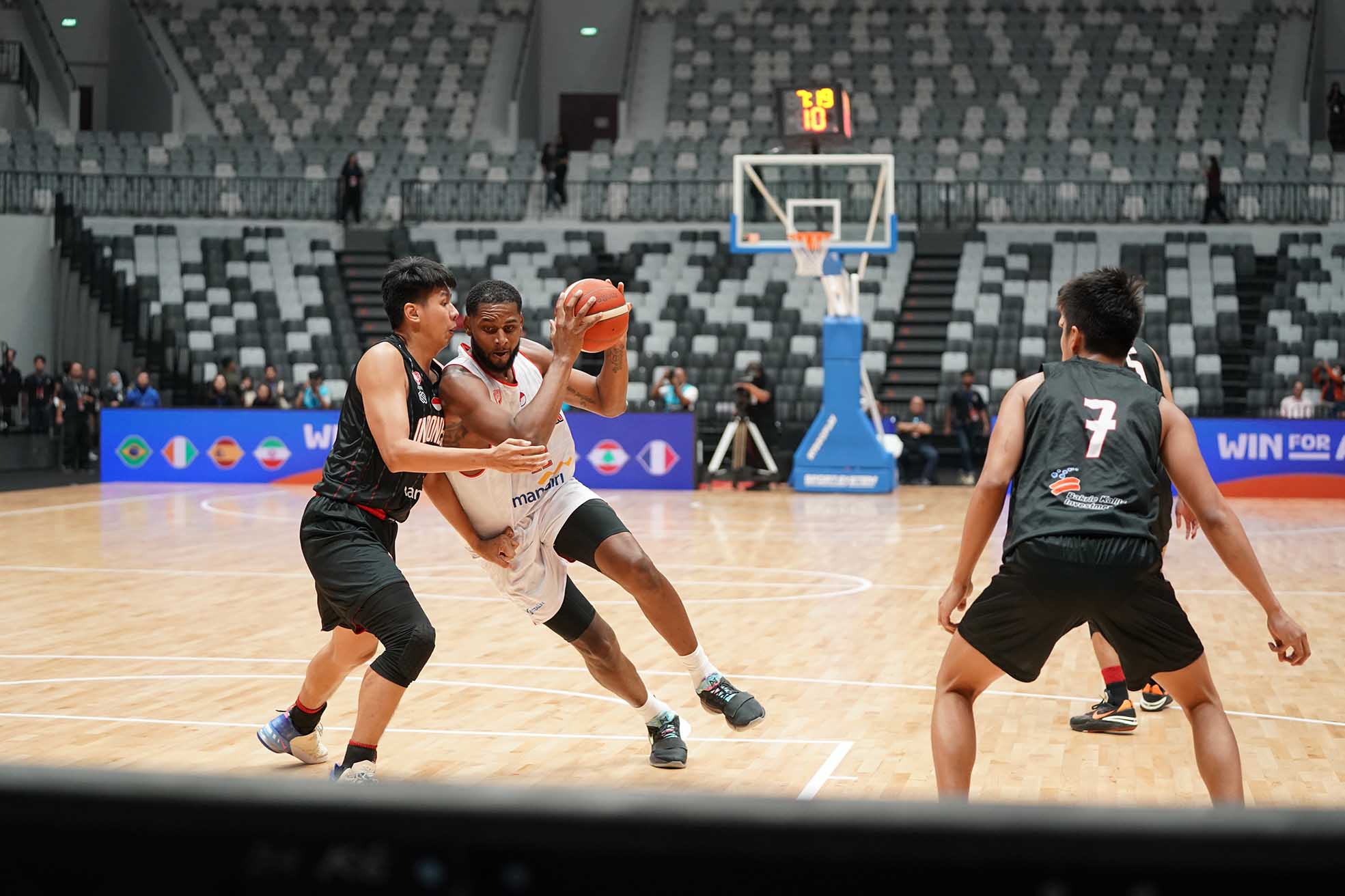 Marques Terrell Bolden, dalam aksinya di Timnas bola basket Indonesia di Indonesia International Basketball Invitational (IIBI) saat melawan juniornya Indonesia Patriots. Timnas Bola Basket mengalahkan Patriots 82-56 di Indonesia Arena, Gelora Bung Karno Senayan, Jakarta, Rabu (2/8/2023) petang.