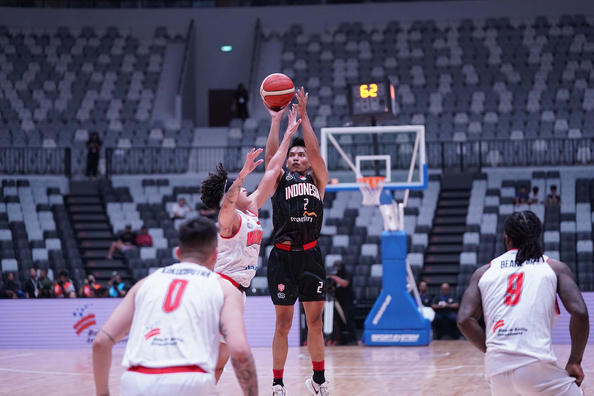 Fisyaful Amir, dalam aksinya di Timnas bola basket Indonesia di Indonesia International Basketball Invitational (IIBI) saat melawan juniornya Indonesia Patriots. Timnas Bola Basket mengalahkan Patriots 82-56 di Indonesia Arena, Gelora Bung Karno Senayan, Jakarta, Rabu (2/8/2023) petang.
