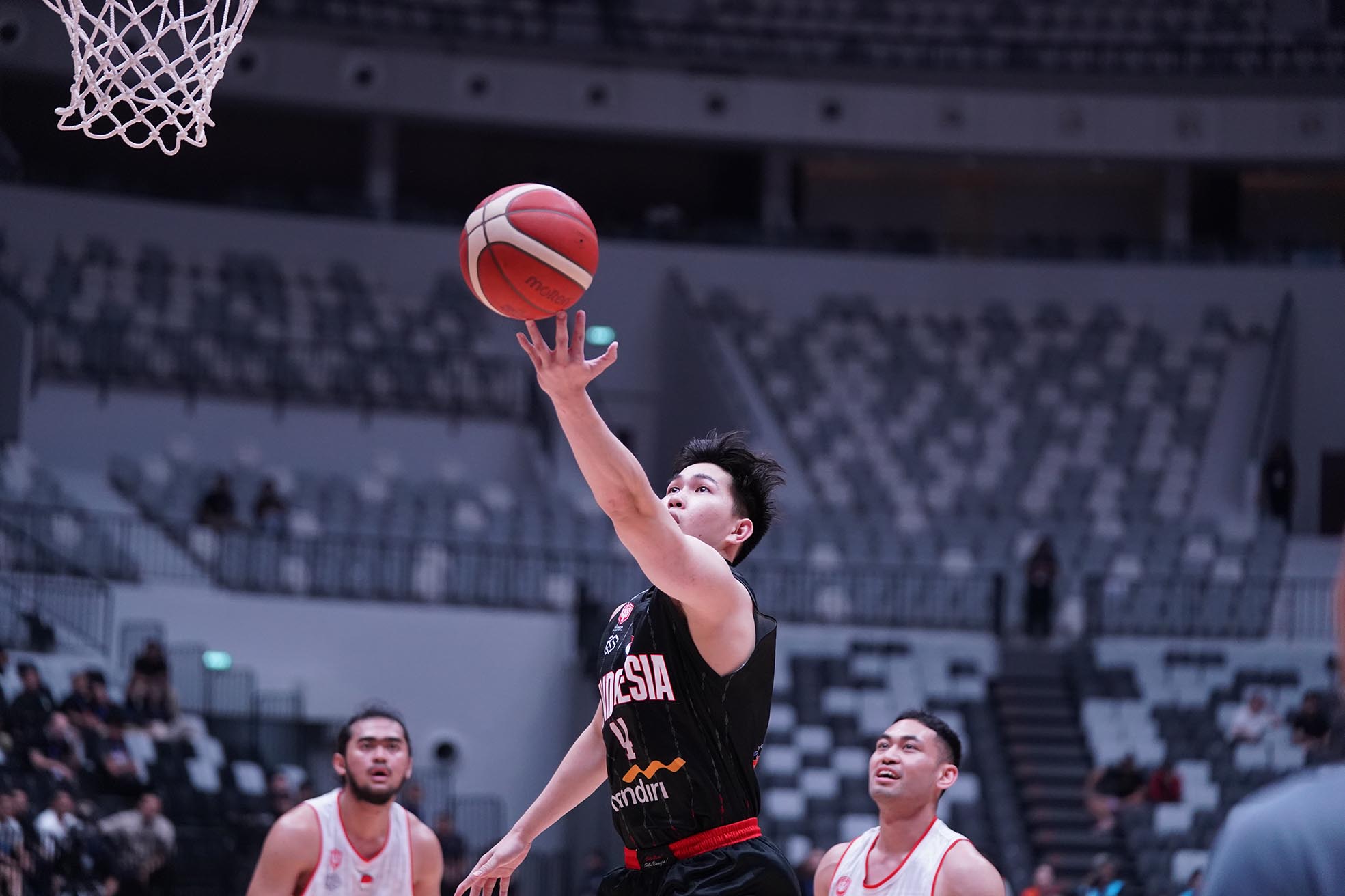 Antoni Erga, dalam aksinya di Timnas bola basket Indonesia di Indonesia International Basketball Invitational (IIBI) saat melawan juniornya Indonesia Patriots. Timnas Bola Basket mengalahkan Patriots 82-56 di Indonesia Arena, Gelora Bung Karno Senayan, Jakarta, Rabu (2/8/2023) petang.