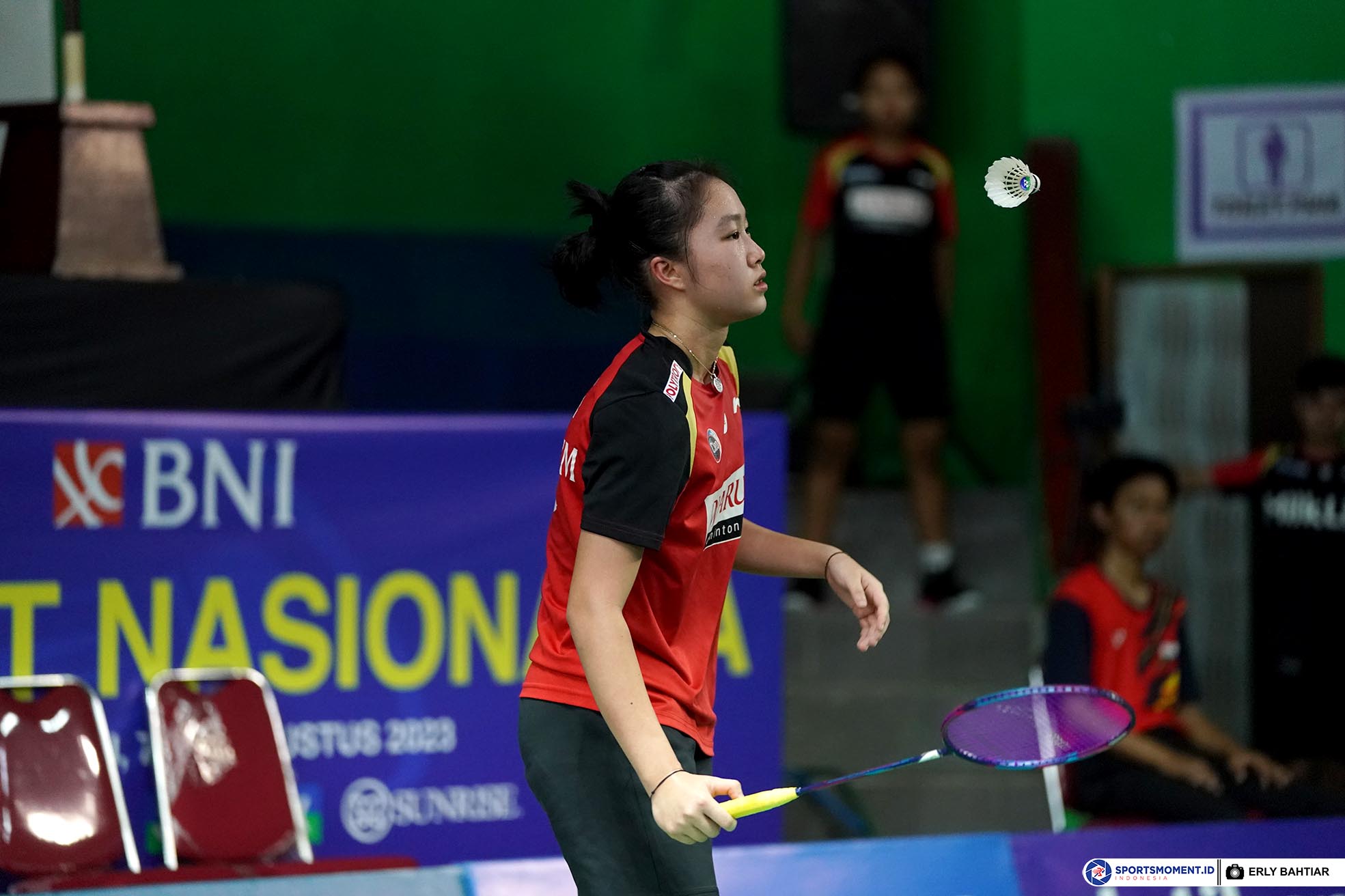 AKSI TRI Jolin Angelia (DJARUM, KUDUS) di Finals Sirkuit Nasional A Banten yang berlangsung di GOR Alun-Alun Serang pada 12 Agustus 2023 (Photo : Erly Bahtiar/sportsmoment.id)