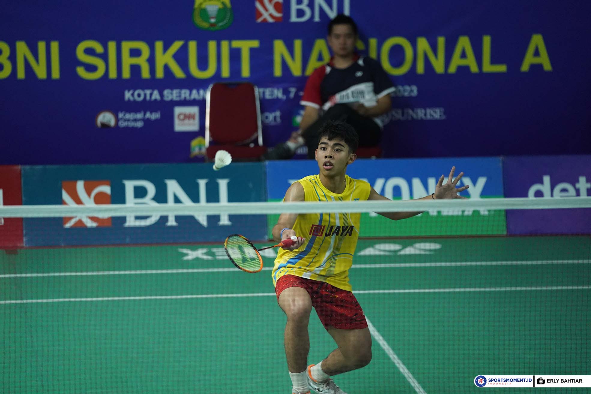 TRA Denis Azzarya (JAYA RAYA) di Finals Sirkuit Nasional A Banten yang berlangsung di GOR Alun-Alun Serang pada 12 Agustus 2023 (Photo : Erly Bahtiar/sportsmoment.id)