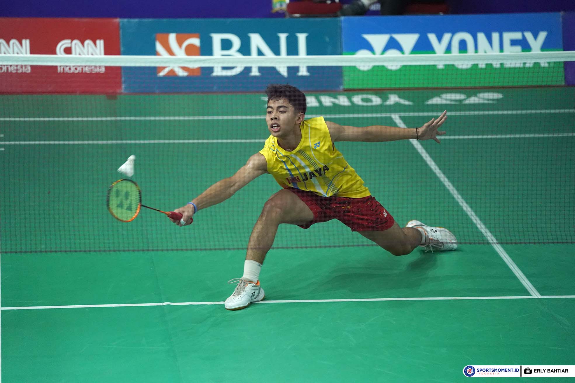 TRA Denis Azzarya (JAYA RAYA) di Finals Sirkuit Nasional A Banten yang berlangsung di GOR Alun-Alun Serang pada 12 Agustus 2023 (Photo : Erly Bahtiar/sportsmoment.id)