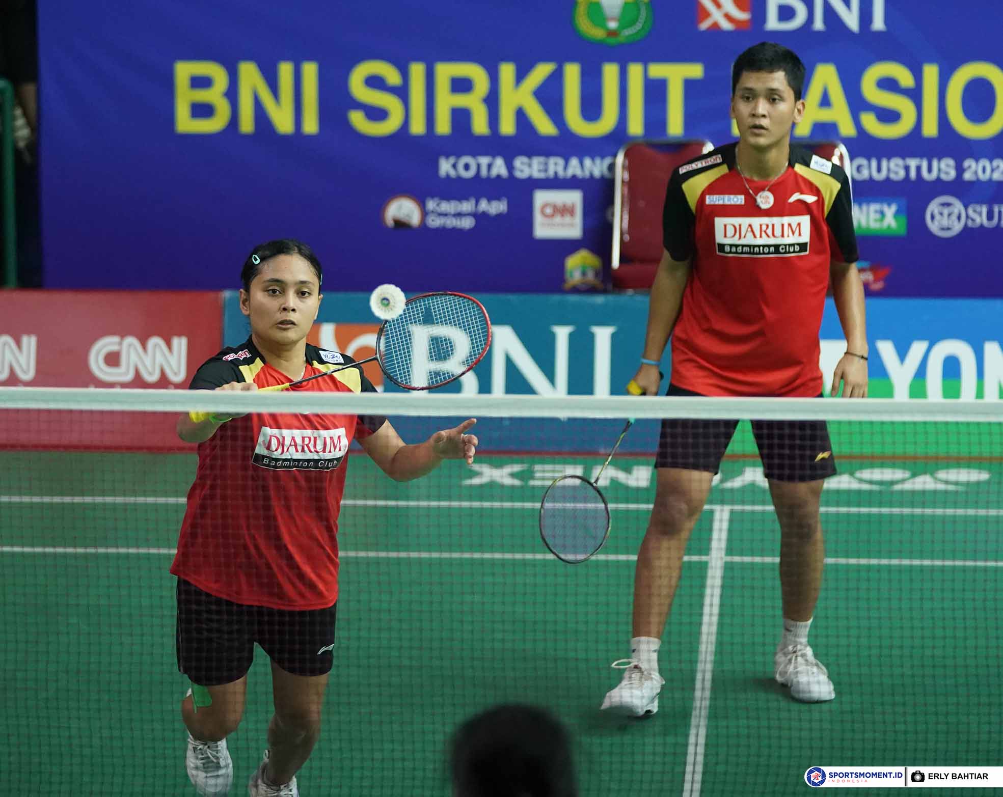 AKSI GTC Anselmus Breagit Fredy Prasetya (DJARUM, KUDUS) & Bernadine Anindya Wardana (DJARUM, KUDUS) [9] di Finals Sirkuit Nasional A Banten yang berlangsung di GOR Alun-Alun Serang pada 12 Agustus 2023 (Photo : Erly Bahtiar/sportsmoment.id)