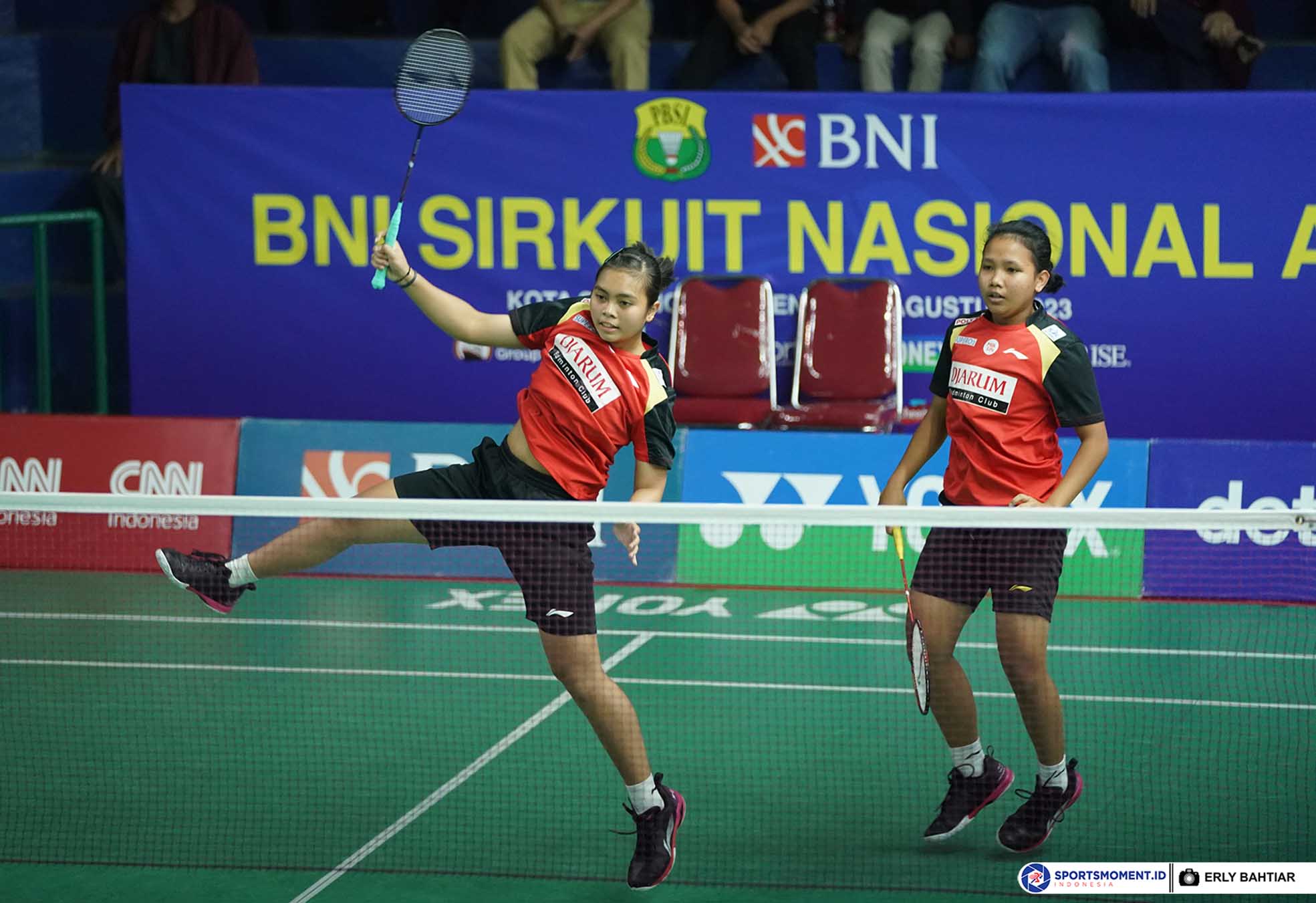 AKSI GTI Bernadine Anindya Wardana (DJARUM, KUDUS) & Velisha Christina (DJARUM, KUDUS) di Finals Sirkuit Nasional A Banten yang berlangsung di GOR Alun-Alun Serang pada 12 Agustus 2023 (Photo : Erly Bahtiar/sportsmoment.id)