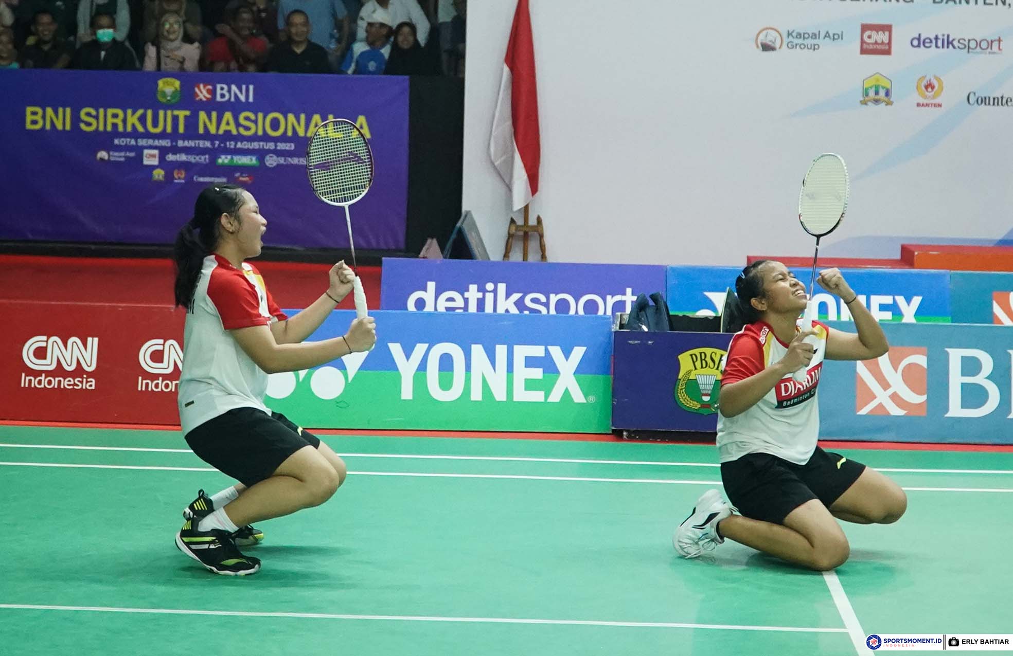 AKSI GPI Aurellia Florenza Lumoindong (DJARUM, KUDUS) [4] & Azka Ghani Putri Wardhana (DJARUM, KUDUS) di Finals Sirkuit Nasional A Banten yang berlangsung di GOR Alun-Alun Serang pada 12 Agustus 2023 (Photo : Erly Bahtiar/sportsmoment.id)