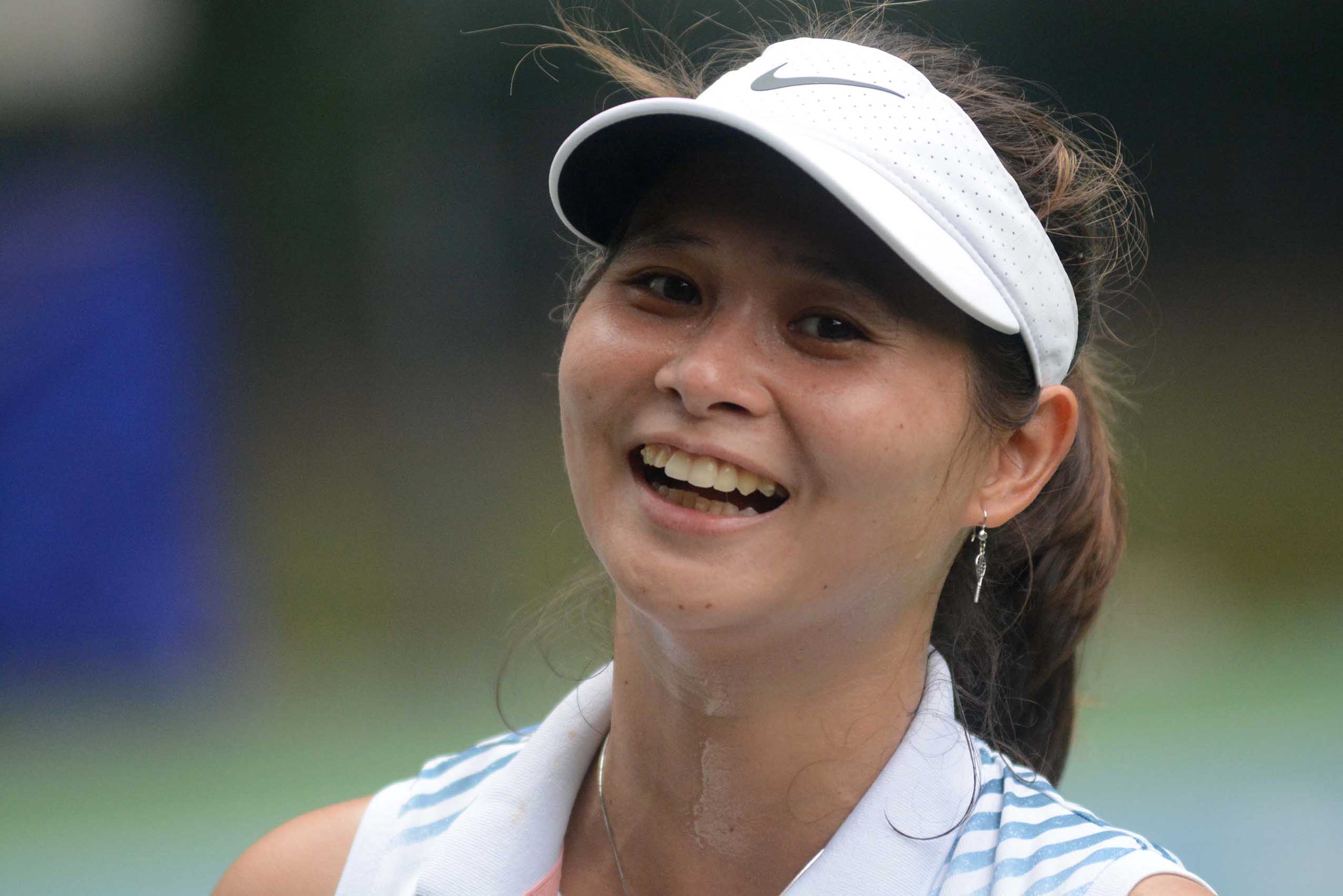 Petenis Jawa Timur, Beatrice Gumulya dalam pertandingan babak perempat final turnamen nasional Mandiri Tennis Open 2022 di lapangan tenis The Sultan Hotel & Residence Jakarta, Jumat, 11 Februari 2022.