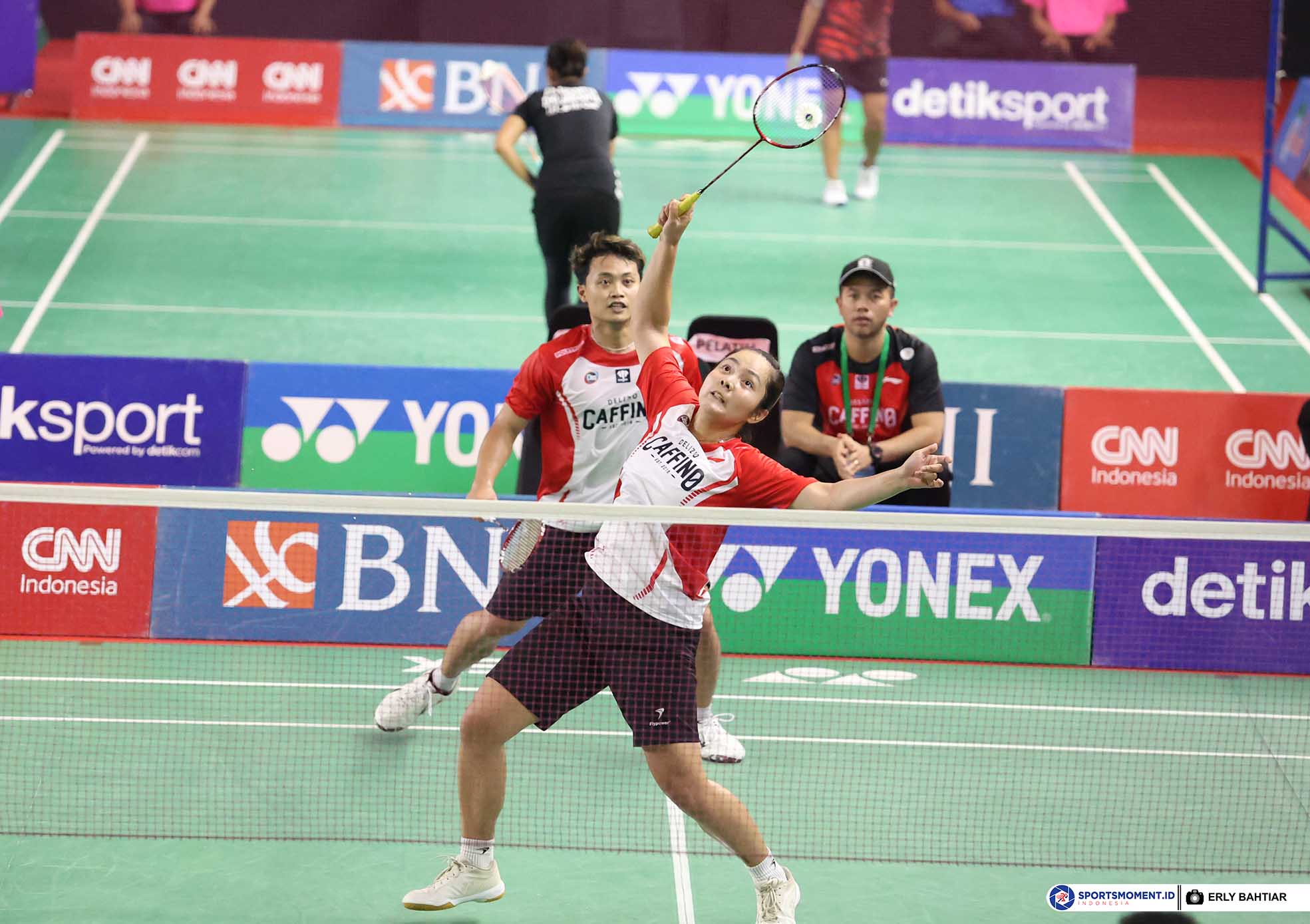 Akbar Bintang Cahyono-Marsheilla Gischa Islami (Jawa Tengah) saat bertanding di Kejuaraan Bulutangkis PBSI Perorangan tahun 2023 yang berlansung di GOR UNJ, Jakarta pada 22 Desember 2023. Photo : Erly Bahtiar/Sportsmoment.id