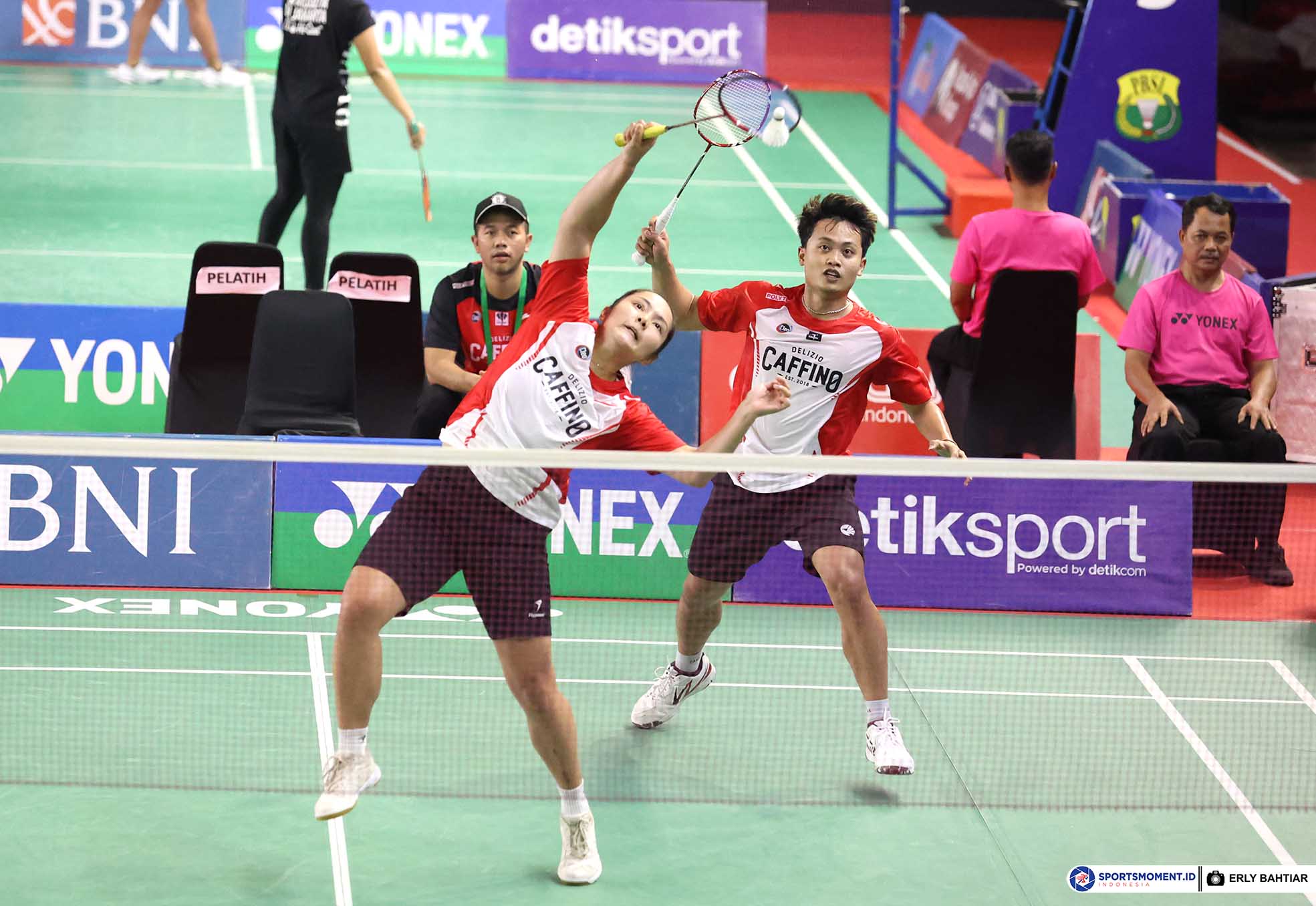 Akbar Bintang Cahyono-Marsheilla Gischa Islami (Jawa Tengah) saat bertanding di Kejuaraan Bulutangkis PBSI Perorangan tahun 2023 yang berlansung di GOR UNJ, Jakarta pada 22 Desember 2023. Photo : Erly Bahtiar/Sportsmoment.id