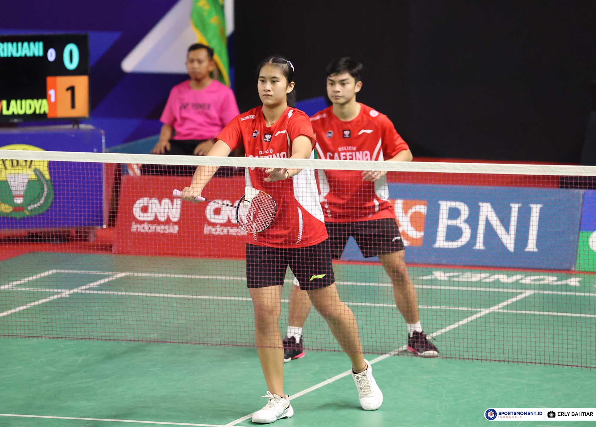 Andhika Wirapati dan Laudya Chelsea Griselda saat bertanding di Kejuaraan Bulutangkis PBSI Perorangan tahun 2023 yang berlansung di GOR UNJ, Jakarta pada 22 Desember 2023. Photo : Erly Bahtiar/Sportsmoment.id