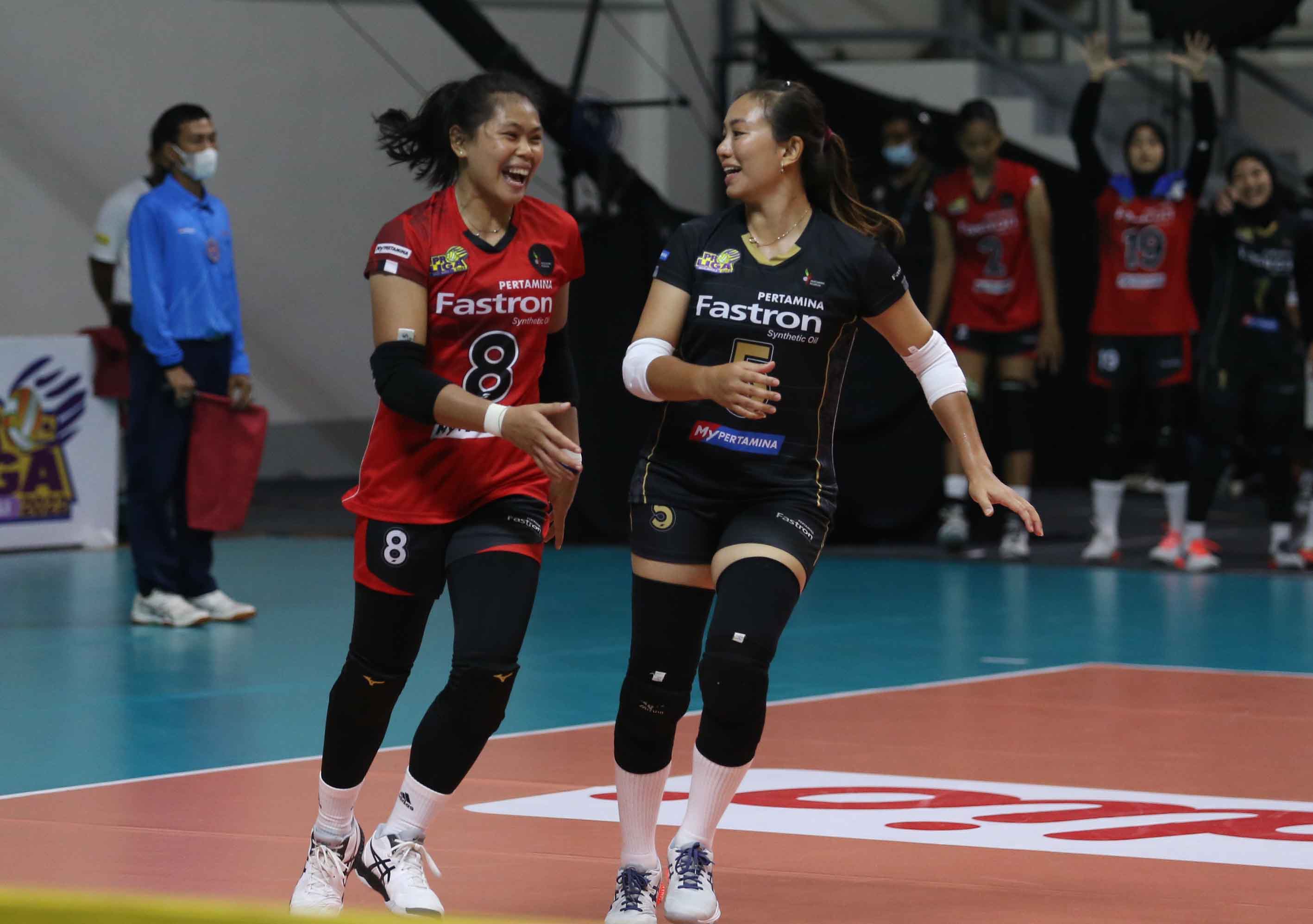 Jakarta Pertamina Fastron berhasil menang atas Gresik Petrokima Pupuk Indonesia dengan skor 3-0 (27-25, 25-20,29-27). Pertandingan Proliga 2022 putaran kedua yang berlangsung di GOR Padepokan Voli Jenderal Polisi Kunarto, Sentul, Jumat (11/2/2022). (Foto : Erly Bahtiar/Sportsmoment.id)