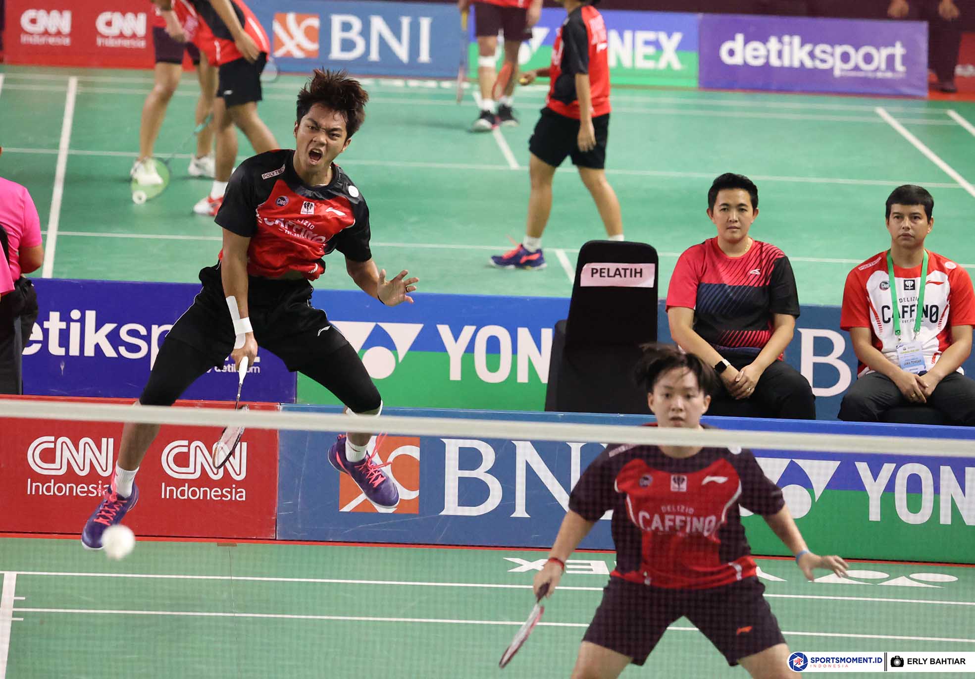 Muhammad Firza Athallah Putra Sungkono [8]-Geraldine Alexandra Bolang (Jawa Tengah)_Kejuranas23 saat bertanding di Kejuaraan Bulutangkis PBSI Perorangan tahun 2023 yang berlansung di GOR UNJ, Jakarta pada 22 Desember 2023.