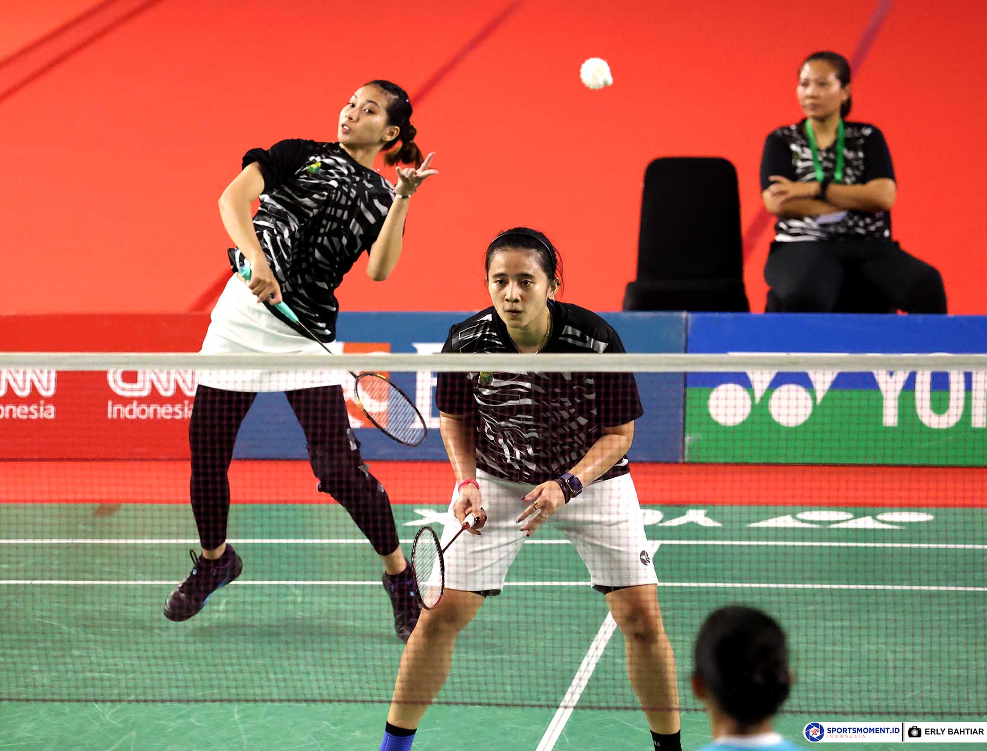 Anggia Shitta Awanda - Putri Larasati (DKI Jakarta) saat bertanding di Kejuaraan Bulutangkis PBSI Perorangan tahun 2023 yang berlansung di GOR UNJ, Jakarta pada 22 Desember 2023. Photo : Erly Bahtiar/Sportsmoment.id