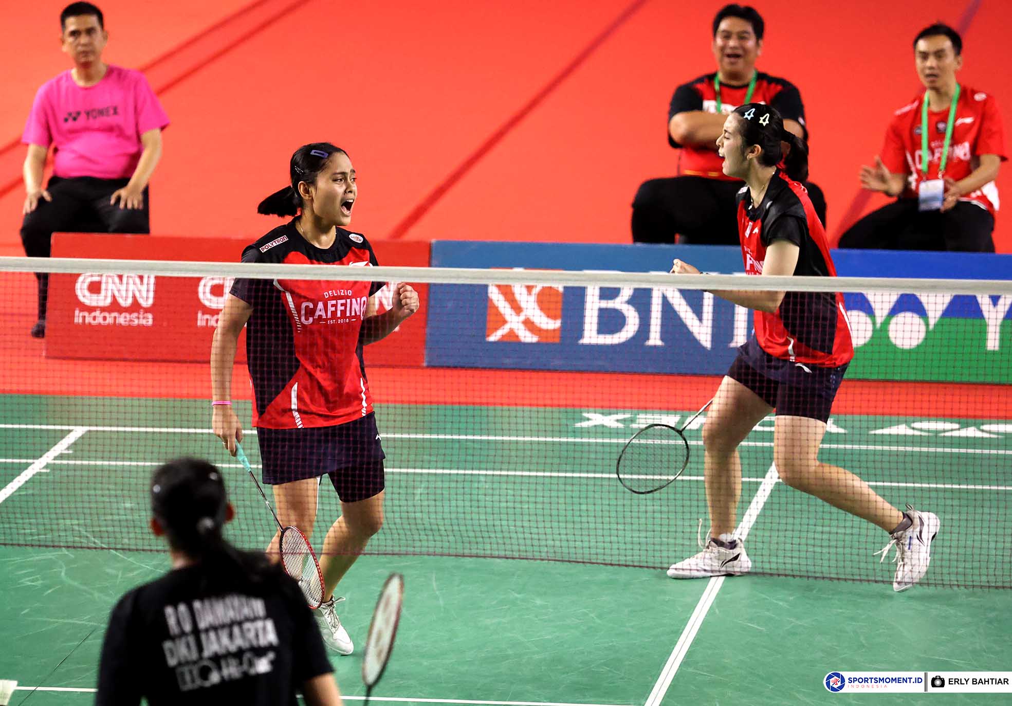 Bernadine Anindya Wardana-Velisha Christina (Jawa Tengah) saat bertanding di Kejuaraan Bulutangkis PBSI Perorangan tahun 2023 yang berlansung di GOR UNJ, Jakarta pada 22 Desember 2023. Photo : Erly Bahtiar/Sportsmoment.id