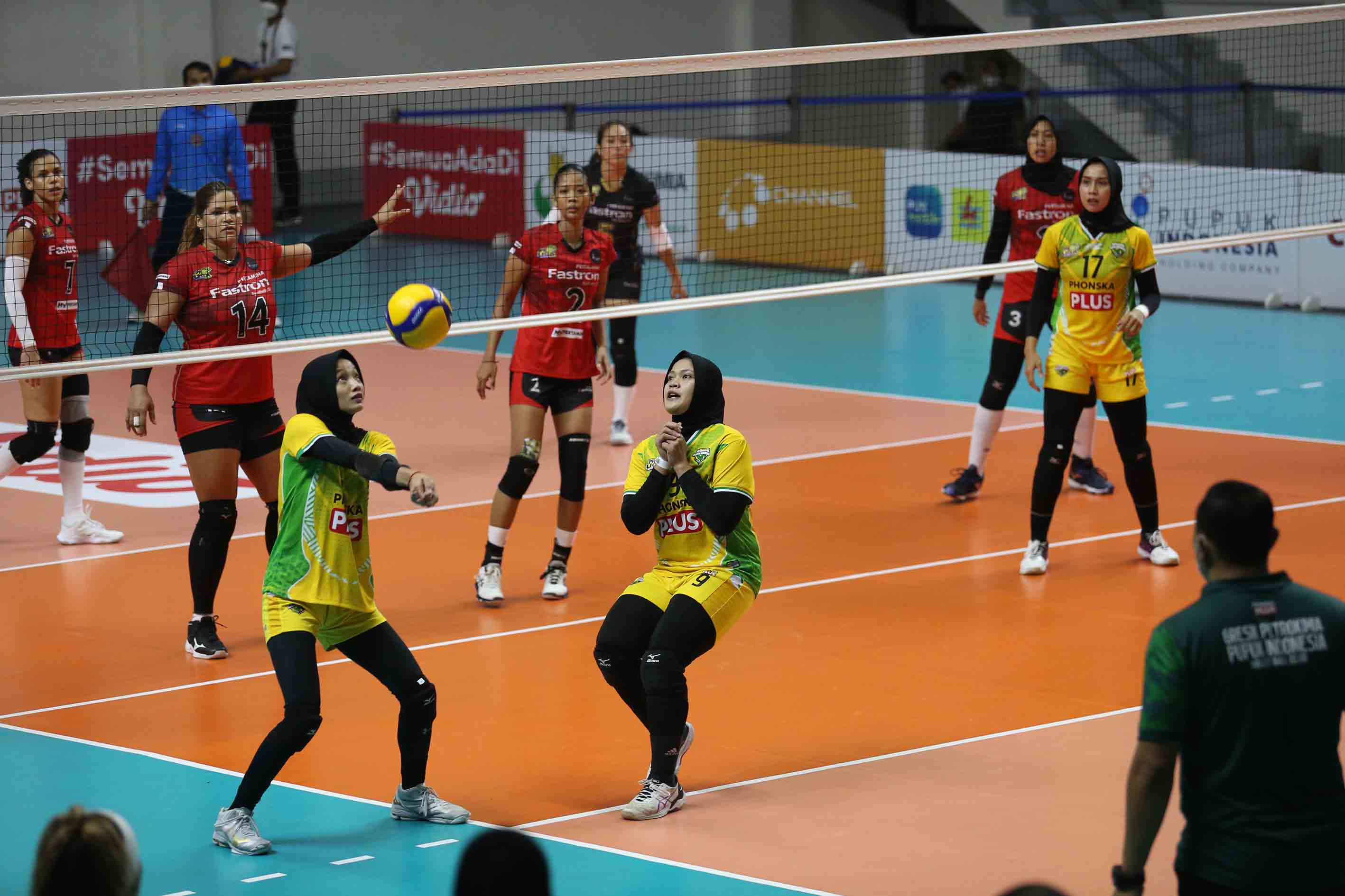 Jakarta PertaminaFastron berhasil menang atas Gresik Petrokima Pupuk Indonesia dengan skor 3-0 (27-25, 25-20,29-27). Pertandingan Proliga 2022 putaran kedua yang berlangsung di GOR Padepokan Voli Jenderal Polisi Kunarto, Sentul, Jumat (11/2/2022). (Foto : Erly Bahtiar/Sportsmoment.id)