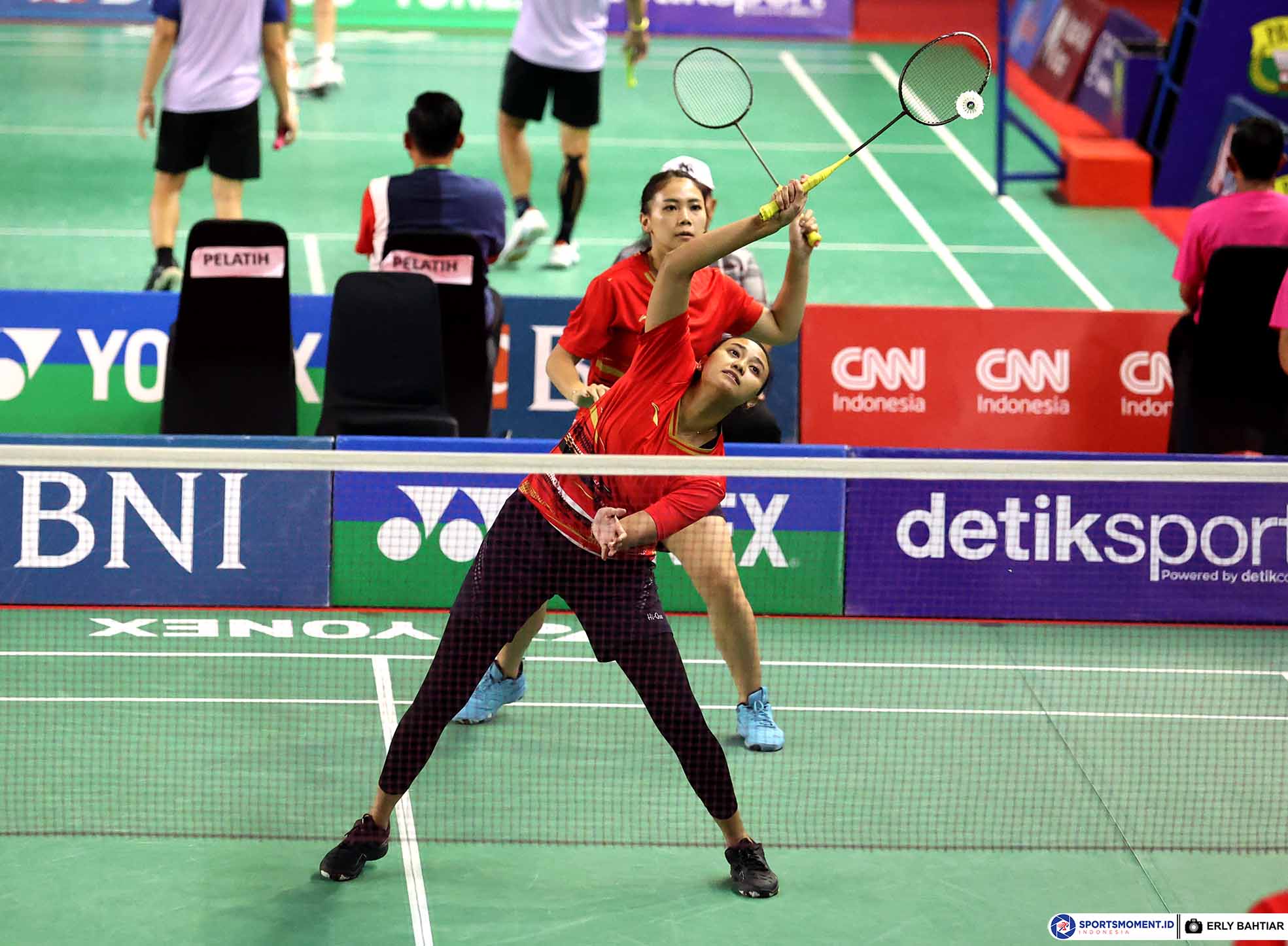 Brigita Marcelia Rumambi - Meirisa Cindy Sahputri (Kalimantan Selatan) saat bertanding di Kejuaraan Bulutangkis PBSI Perorangan tahun 2023 yang berlansung di GOR UNJ, Jakarta pada 22 Desember 2023. Photo : Erly Bahtiar/Sportsmoment.id