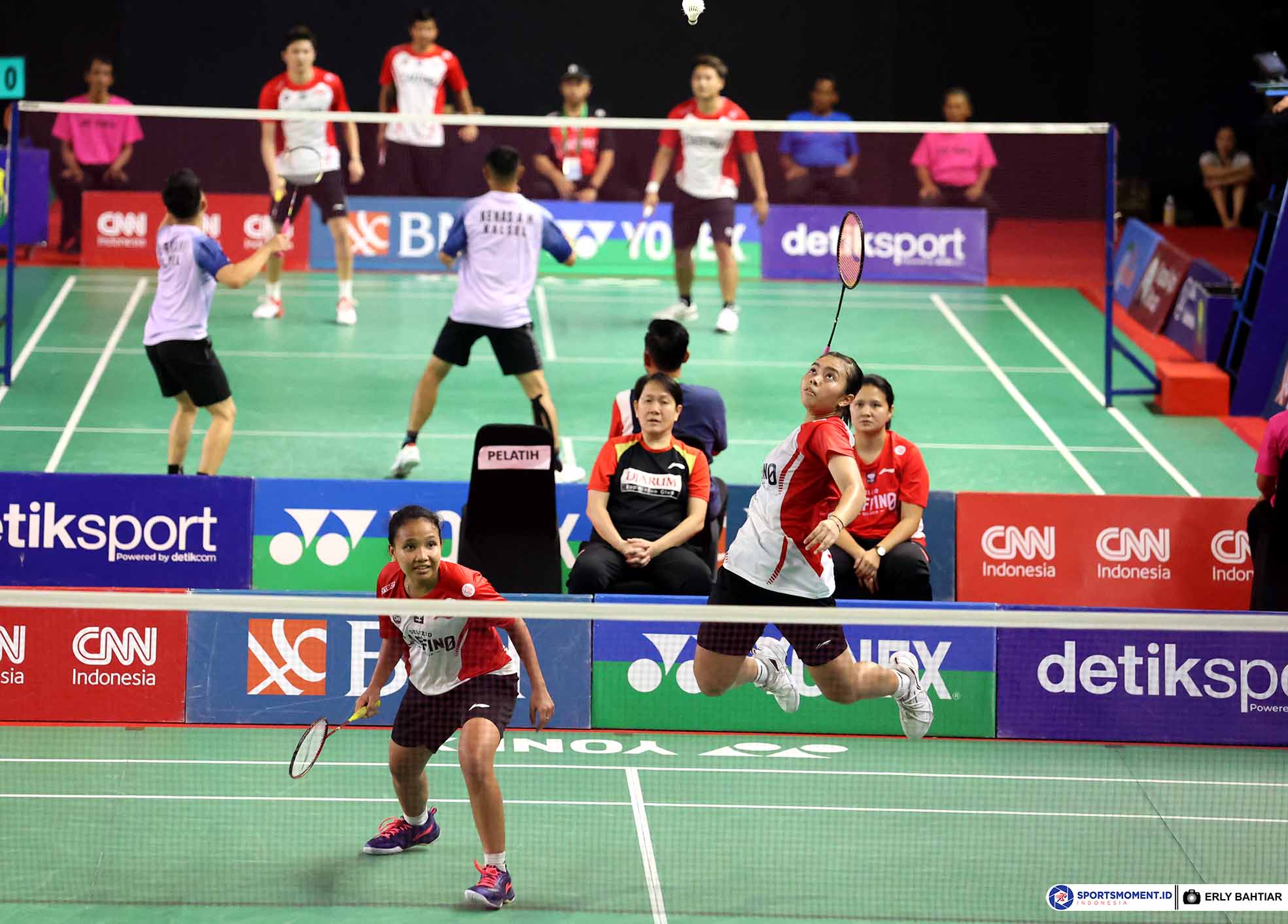 Isyana Syahira Meida - Rinjani Kwinnara Nastine (Jawa Tengah) saat bertanding di Kejuaraan Bulutangkis PBSI Perorangan tahun 2023 yang berlansung di GOR UNJ, Jakarta pada 22 Desember 2023. Photo : Erly Bahtiar/Sportsmoment.id
