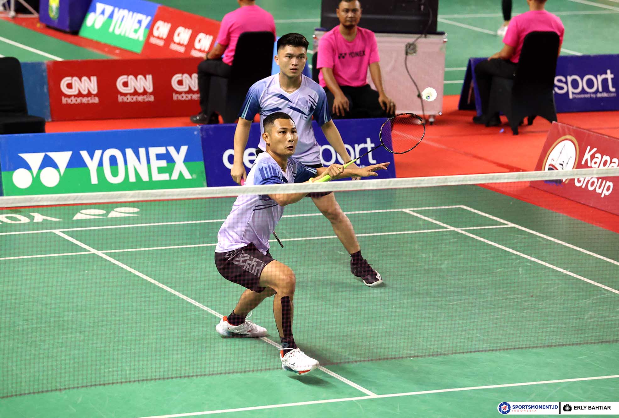 Kenas Adi Haryanto - Muhammad Rivani (Kalimantan Selatan) saat bertanding di Kejuaraan Bulutangkis PBSI Perorangan tahun 2023 yang berlansung di GOR UNJ, Jakarta pada 22 Desember 2023. Photo : Erly Bahtiar/Sportsmoment.id