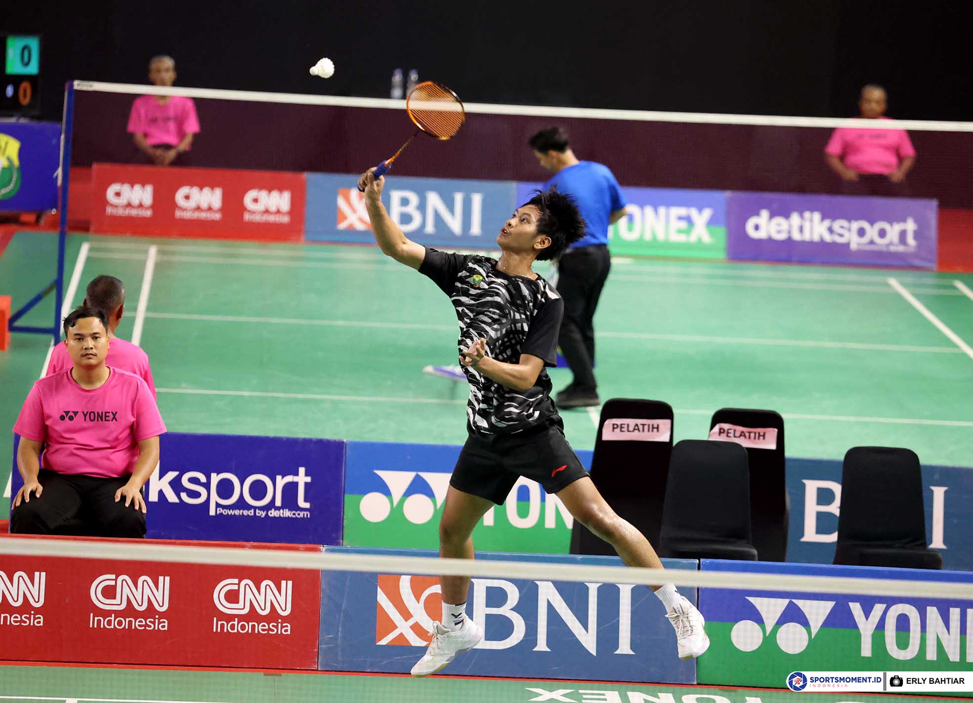 Rizki Ansyahri (DKI Jakarta) saat bertanding di Kejuaraan Bulutangkis PBSI Perorangan tahun 2023 yang berlansung di GOR UNJ, Jakarta pada 22 Desember 2023. Photo : Erly Bahtiar/Sportsmoment.id