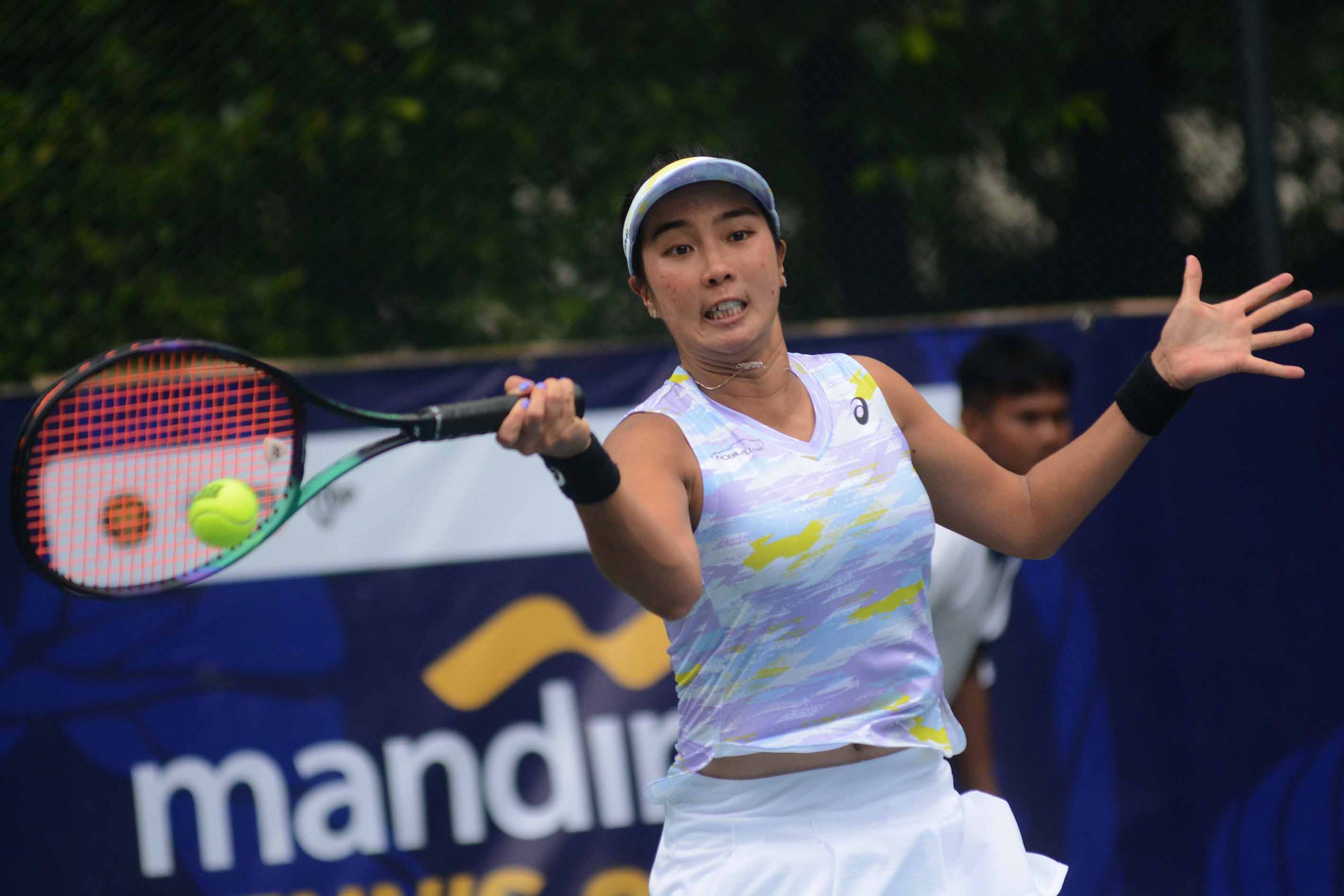 ALDILA SUTJIADI Petenis Jawa Timur, Aldila Sutjiadi dalam babak Semi Final turnamen nasional Mandiri Tennis Open 2022 di lapangan tenis The Sultan Hotel & Residence Jakarta, Sabtu, 9 Februari 2022.