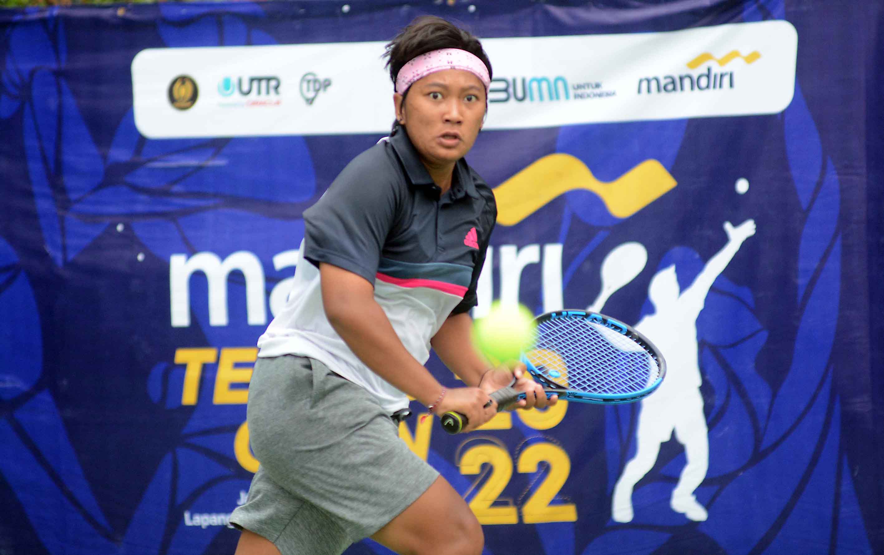 FADONA TITALYANA Petenis Kalimantan Selatan, Fadona Titalyanai dalam pertandingan babak Semi Final turnamen nasional Mandiri Tennis Open 2022 di lapangan tenis The Sultan Hotel & Residence Jakarta, Sabtu, 12 Februari 2022. (FOTO: HO/DwiAri Setyadi/tennisindonesia.com/sportsmoment.id)