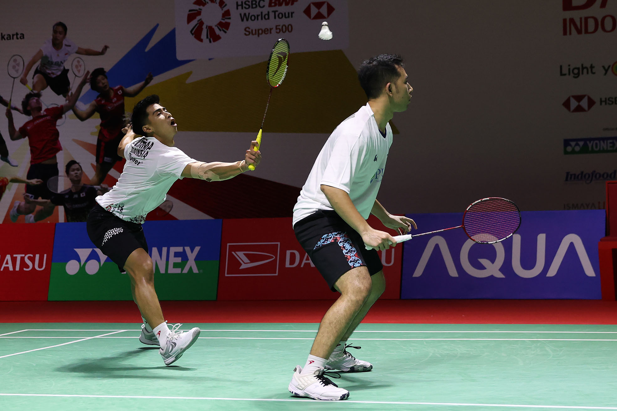 Ganda putra Indonesia, Sabar Karyaman Gutama/Moh. Reza Pahlevi Isfahani terhenti di babak perempatfinal setelah dikalahkan ganda putra Tiongkok, Liu Yu Chen/Ou Xuan Yi melalui pertarungan tiga gim, 21-11, 19-21 dan 6-21 pada gelaran Daihatsu Indonesia Masters 2024, Jum'at (26/1) di Istora Senayan Jakarta. (Foto : Humas PP PBSI )