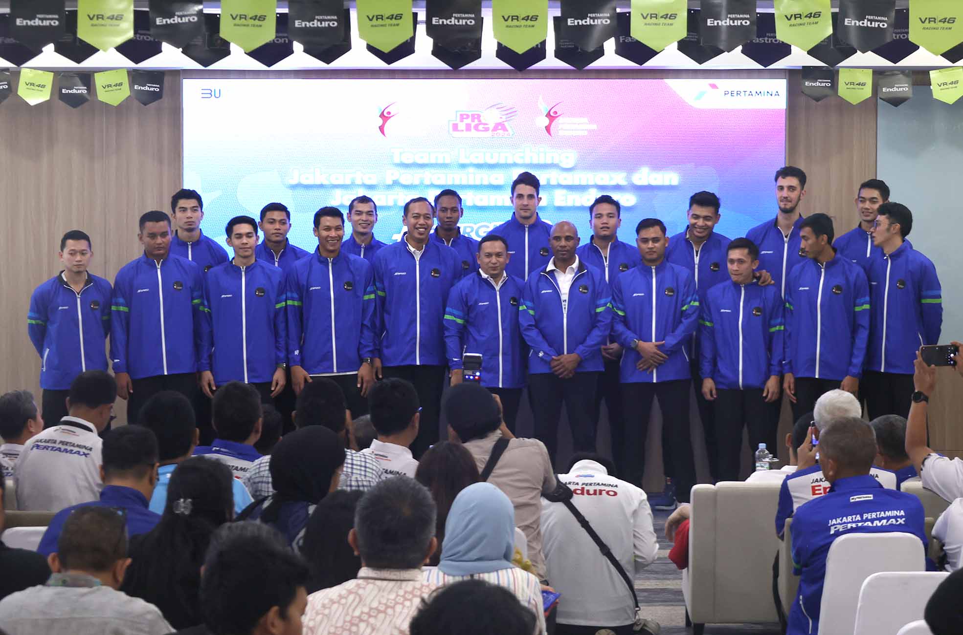 PT Pertamina (Persero) melalui PT Pertamina Lubricants dan PT Pertamina Patra Niaga secara resmi mengesahkan dan melepaskan tim voli Jakarta Pertamina Pertamax (putra) dan Jakarta Pertamina Enduro (putri) untuk mengikuti kompetisi Proliga 2024 yang akan dimulai pada 25 April 2024. Kedua tim optimistis bisa bersaing dalam perebutan gelar juara. Pengenalan skuad tim putra dan putri diadakan di Graha Pertamina Jakarta, pada 17 April 2024. (Photo : Erly Bahtiar/sportsmoment.id)