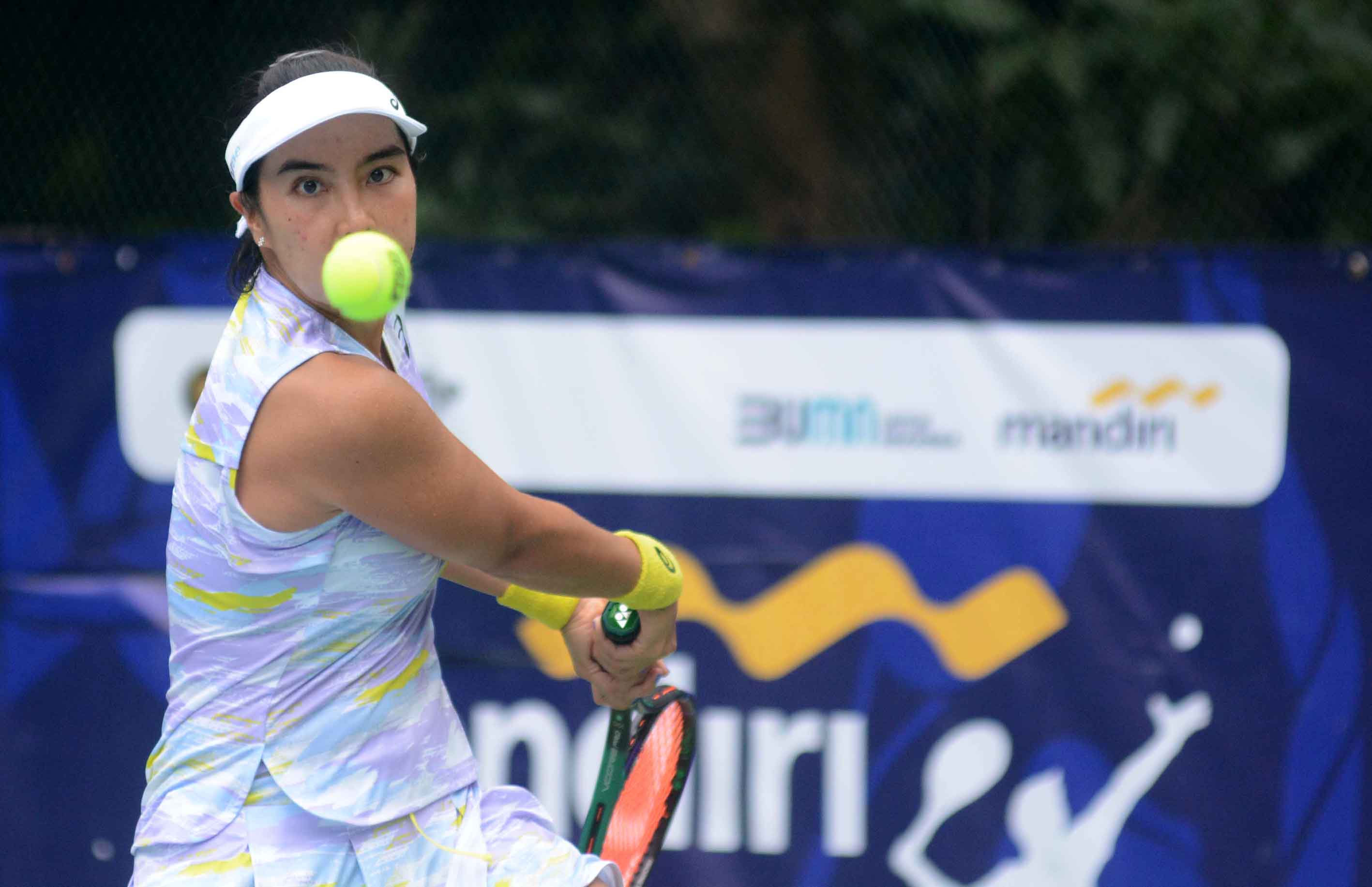 Petenis tunggal putri Aldila Sutjiadi menyabet gelar juara Mandiri Tennis Open 2022 usai mengalahkan petenis Kalimantan Selatan Fadona Titalyana dalam babak final di The Sultan Hotel & Residence Jakarta, Minggu (13/2/2022). Duel antara unggulan teratas putri, Aldila, dengan petenis unggulan keempat, Fadona, berlangsung panas pada set pertama. Namun, wakil Jawa Timur itu mampu mengemas kemenangan dengan 7-5 6-0. (FOTO; HO/DwiAri Setyadi/tennisindonesia.com/sportsmoment.id0