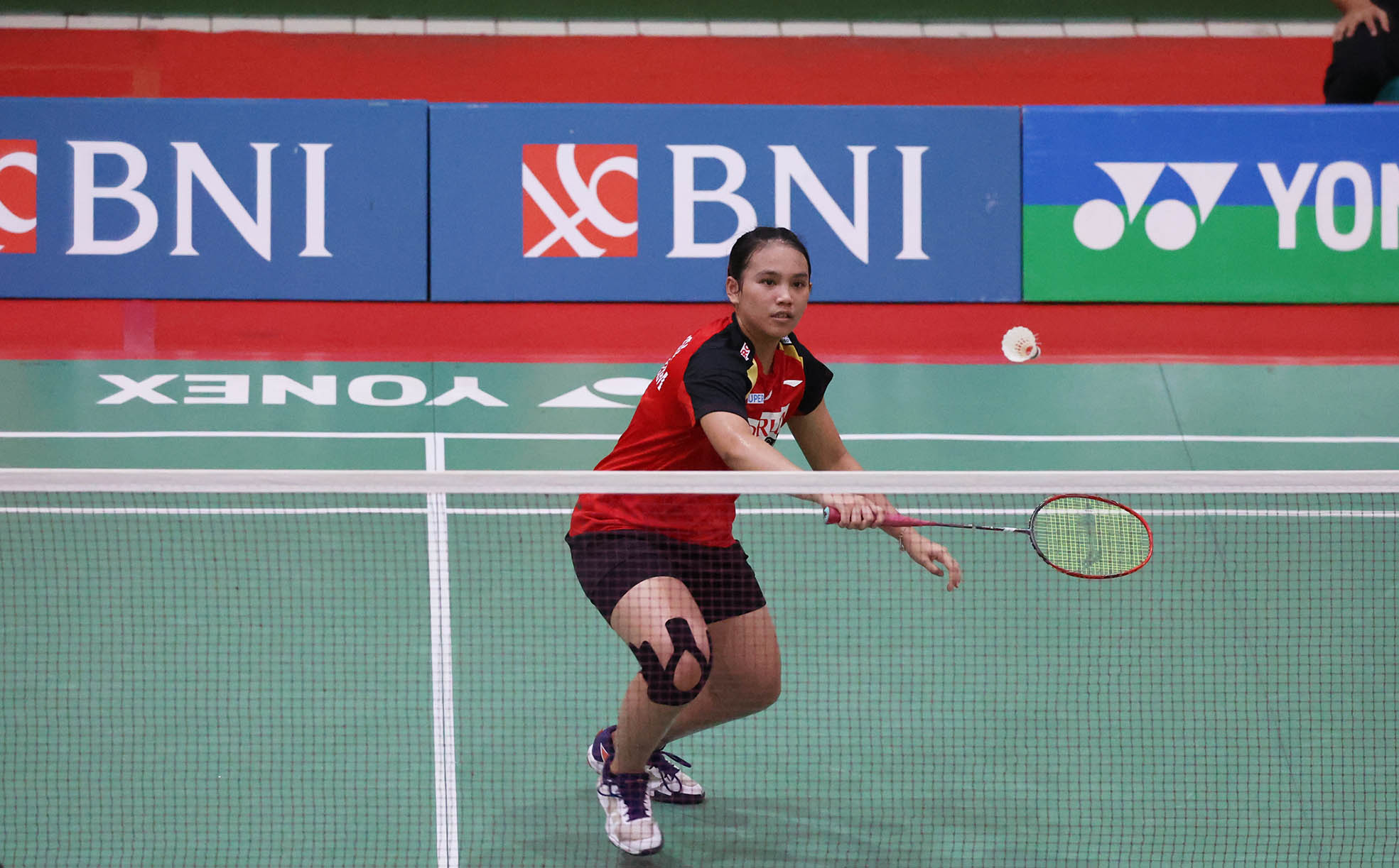 Tunggal taruna putri asal klub Djarum Kudus, Shandy Tirani Mahesi dikalahkan tunggal taruna putri asal klub Jaya Raya Jakarta,Thalitha Ramadhani Wiryawan, dua gim langsung, 21-23, 17-21 pada laga final gelaran BNI Sirkuit Nasional A Jawa Tengah di GOR Satria Purwokerto, Sabtu, (18/5). (Foto by: Erly Bahtiar/sportsmoment.id)