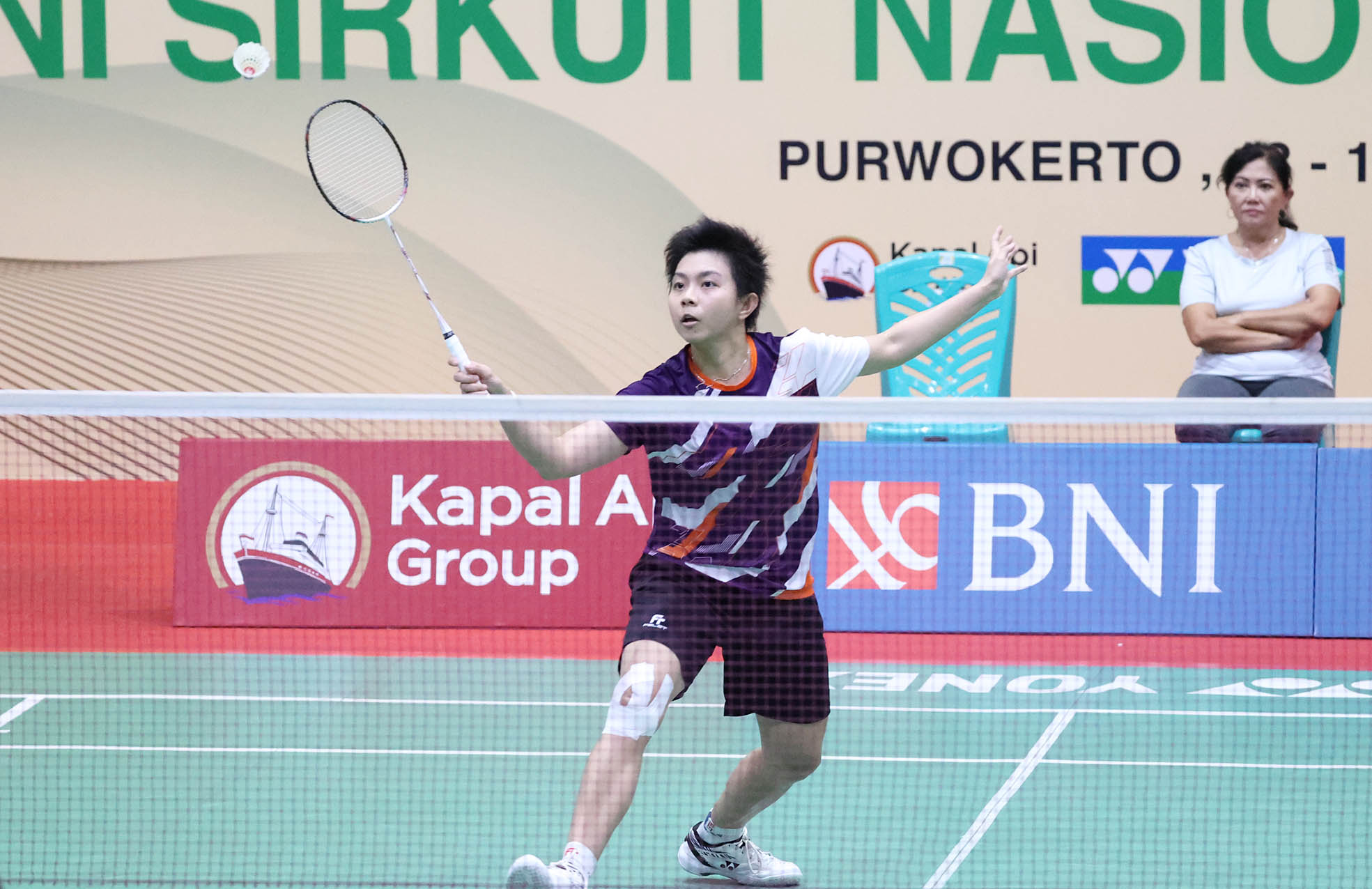 Tunggal Dewasa putri asal klub Shamrock Medan, Susanto Yulia Yosephine dikalahkan tunggal dewasa putri asal klub Mutiara Cardinal Bandung Saifi Rizka Nurhidayah, dua gim langsung, 15-21, 17-21 pada laga semifinal gelaran BNI Sirkuit Nasional A Jawa Tengah di GOR Satria Purwokerto, Jum’at, (17/5). (Foto by: Erly Bahtiar/sportsmoment.id)