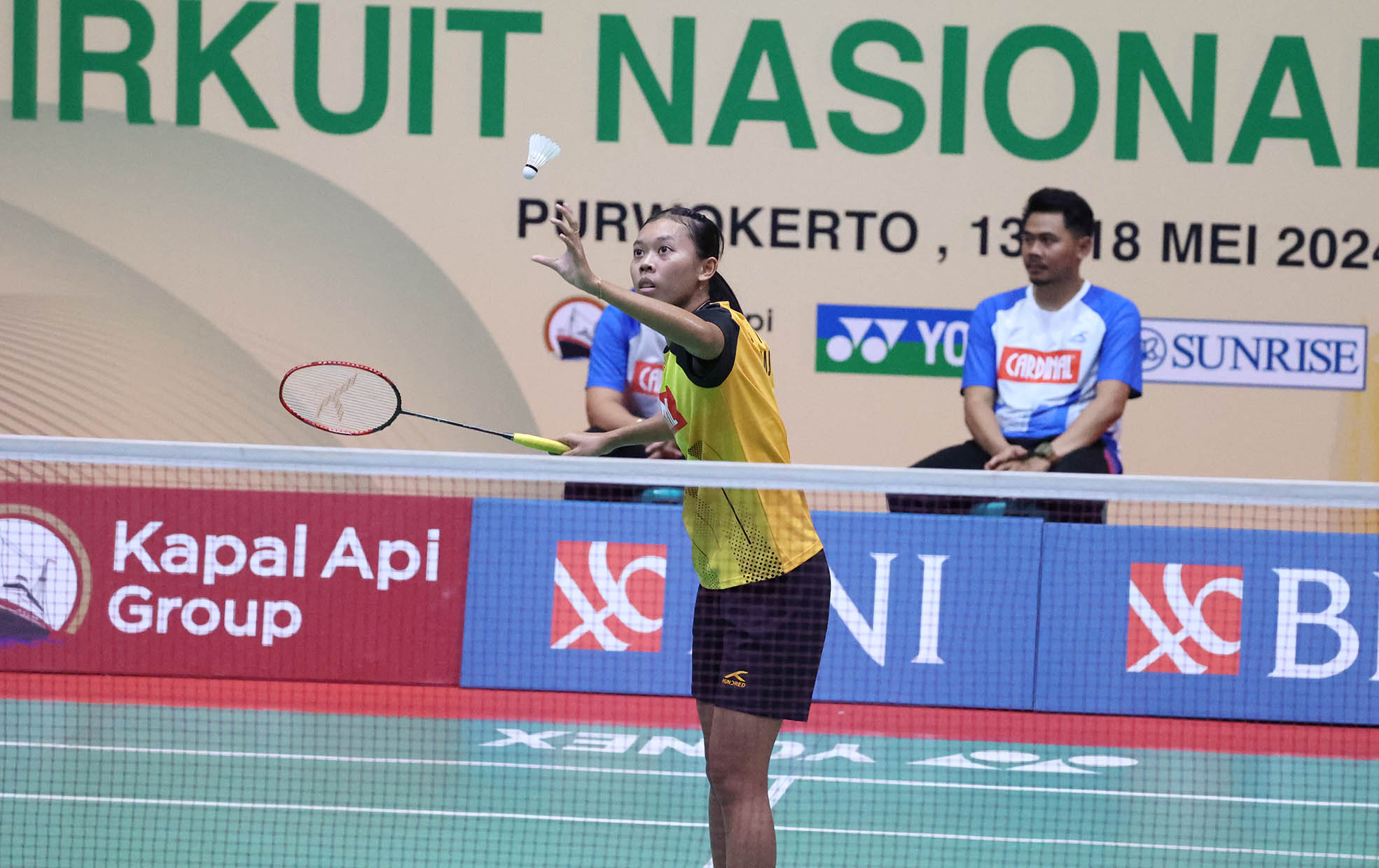 Tunggal dewasa putri asal klub Mutiara Cardinal Bandung Saifi Rizka Nurhidayah berhasil mengalahkan tunggal dewasa putri asal klub Shamrock Medan, Susanto Yulia Yosephine dua gim langsung, 21-15, 21-17 pada laga semifinal gelaran BNI Sirkuit Nasional A Jawa Tengah di GOR Satria Purwokerto, Jum’at, (17/5). (Foto by: Erly Bahtiar/sportsmoment.id)