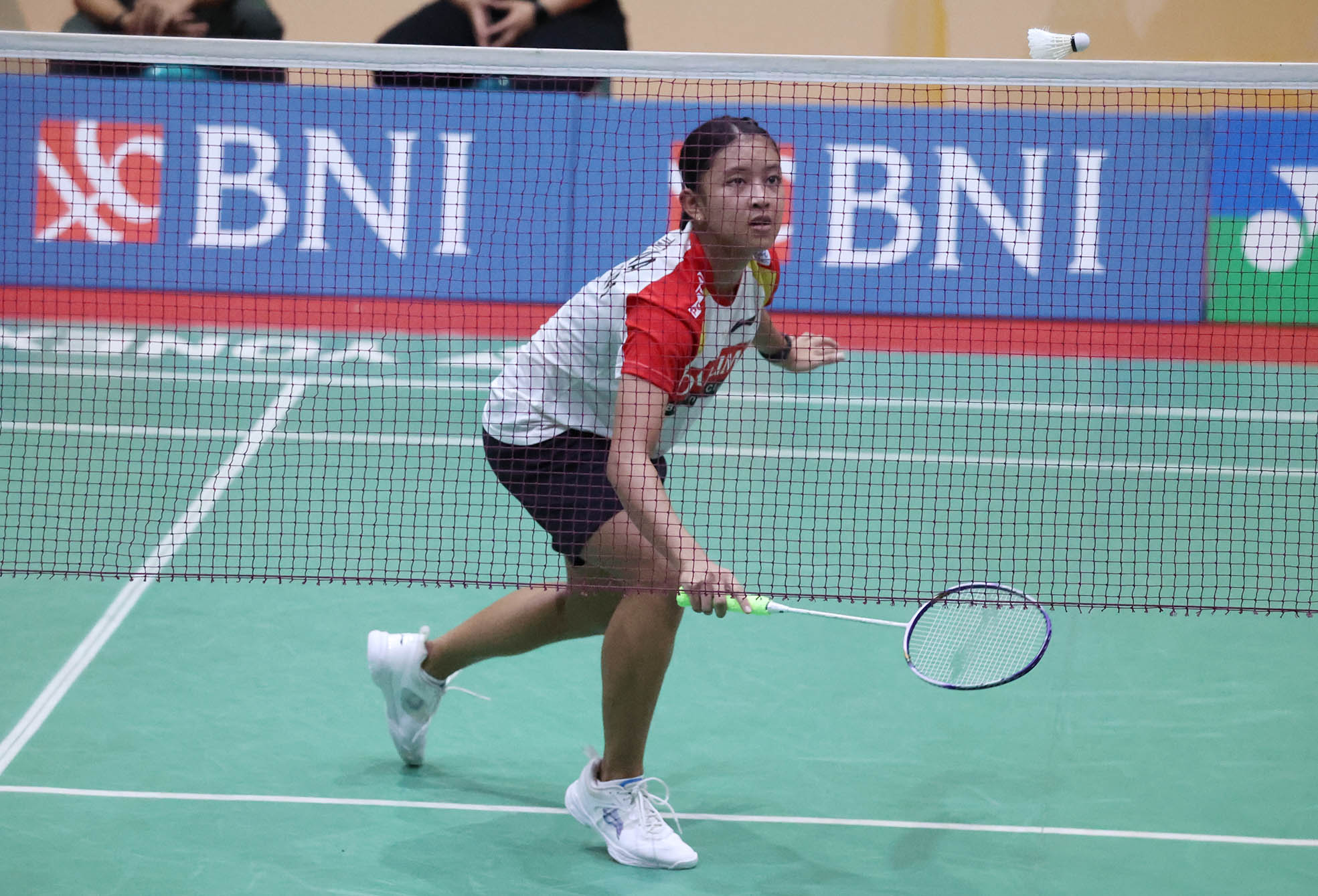 Tunggal remaja putri asal klub Djarum Kudus Shaafiya Yasmin Maitsaa berhasil mengalahkan tunggal remaja putri asal klub Mutiara Cardinal Bandung, Mayla Cahya Afilian Pratiwi dua gim langsung, 21-15, 21-11 pada laga semifinal gelaran BNI Sirkuit Nasional A Jawa Tengah di GOR Satria Purwokerto, Jum’at, (17/5). (Foto by: Erly Bahtiar/sportsmoment.id)