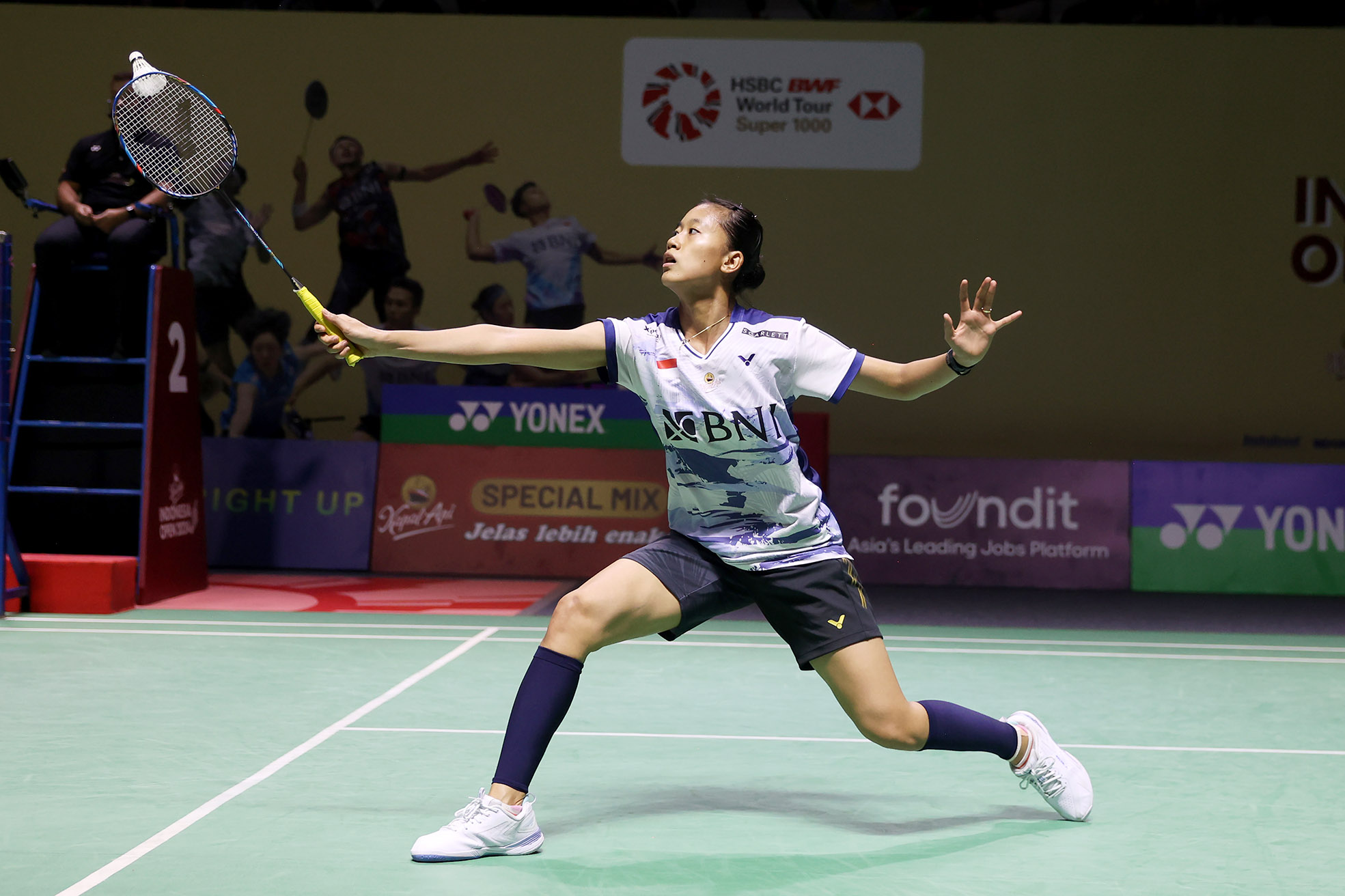 Tunggal putri Indonesia, Putri Kusuma Wardani terhenti dibabak pertama setelah dikalahkan kompatriotnya, Gregoria Mariska Tunjung dua gim langsung 14-21, 17-21 pada gelaran Kapal Api Indonesia Open 2024 di Istora Senayan Jakarta, Selasa (4/6). (Photo by : Humas PP PBSI/sportsmoment.id)