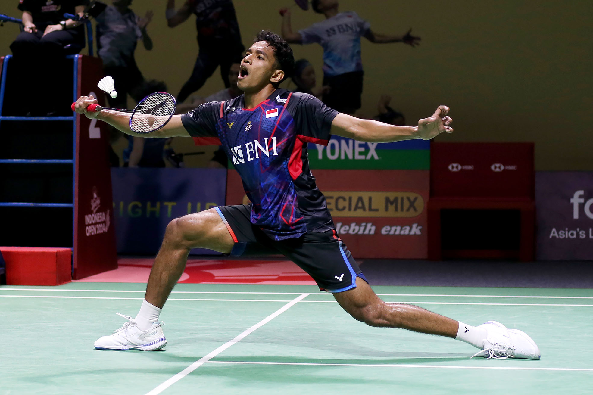 Tunggal putra Indonesia, Chico Aura Dwi Wardoyo dikalahkan tunggal putra Thailand, Kantaphon Wangcharoen dua gim langsung, 16-21, 9-21 pada babak pertama gelaran Kapal Api Indonesia Open 2024 di Istora Senayan Jakarta, Selasa (4/6). (Photo by : Humas PP PBSI/sportsmoment.id)