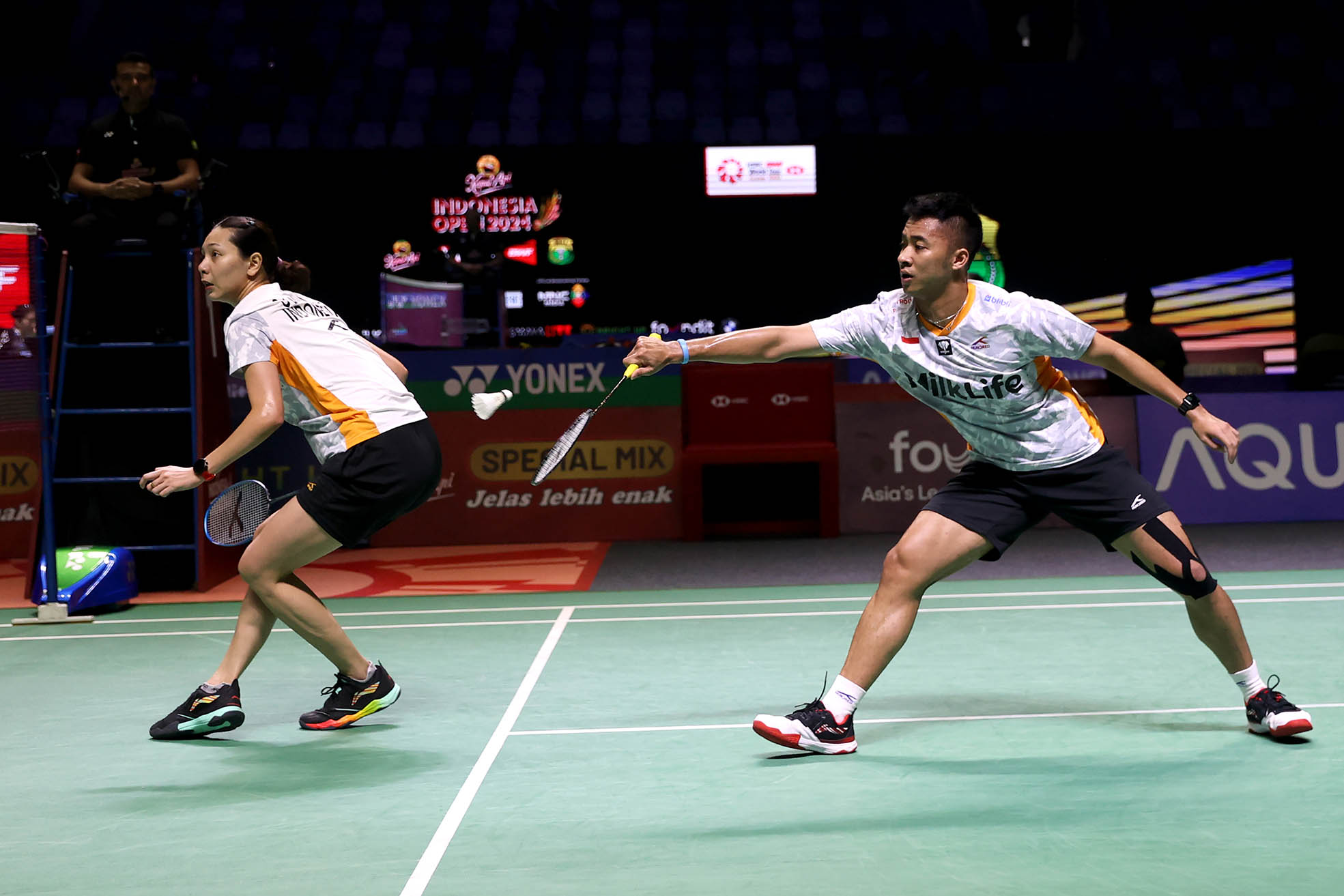 Ganda campuran Indonesia, Dejan Ferdinansyah/Gloria Emanuelle Widjaja berhasil melaju ke babak perempatfinal setelah berhasil mengalahkan ganda campuran Korea, Seo Seung Jae/Chae Yu Jung melalui pertarungan tiga gim 21-15, 15-21, 21-4 pada babak kedua gelaran Kapal Api Indonesia Open 2024 di Istora Senayan Jakarta, Kamis (6/6). (Photo by : Humas PP PBSI/sportsmoment.id)