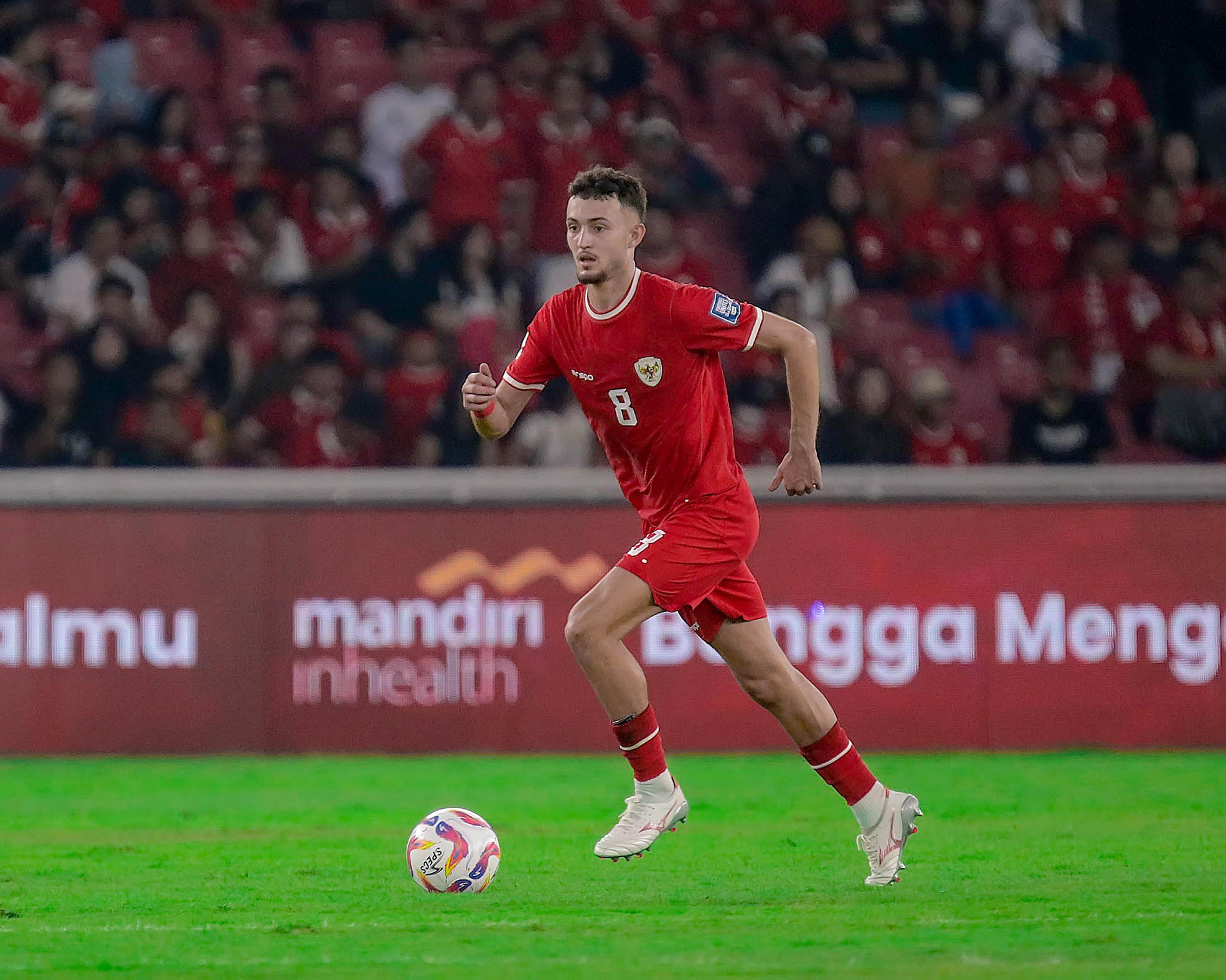 Pemain Timnas Indonesia, Ivar Jenner (8) ketika bertanding melawan Irak pada laga kualifikasi Piala Dunia 2026 di Stadion Gelora Bung Karno, Senayan, Jakarta, Kamis (6/6). Indonesia dikalahkan Irak dengan skor 2-0.