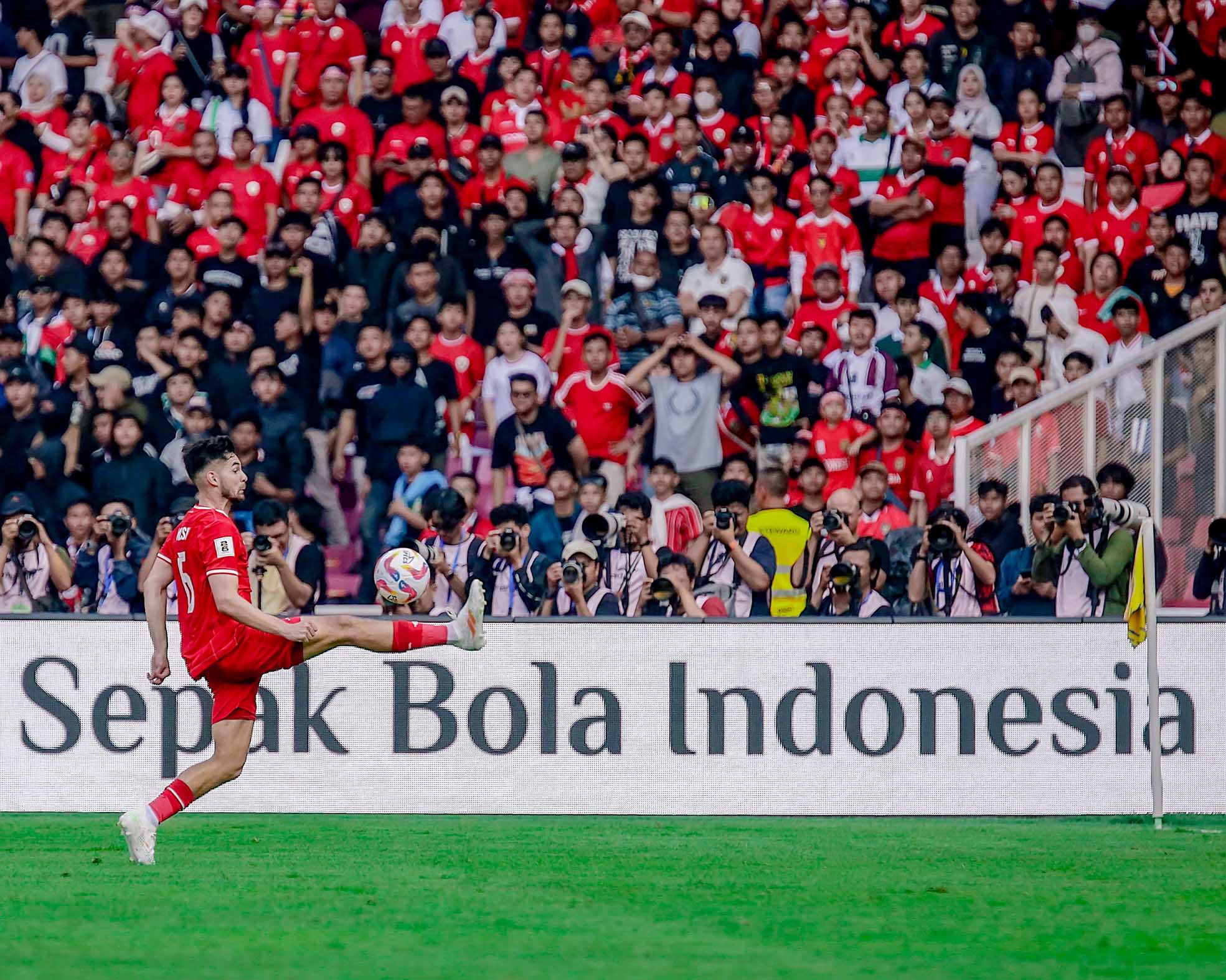 Pemain Tim Nasional Indonesia, Sandy Walsh berusaha mengontrol bola pada pertandingan kualifikasi Piala Dunia 2026 Indonesia vs Irak, Kamis 6 Juni 2024 di Stadion Utama Gelora Bung Karno.