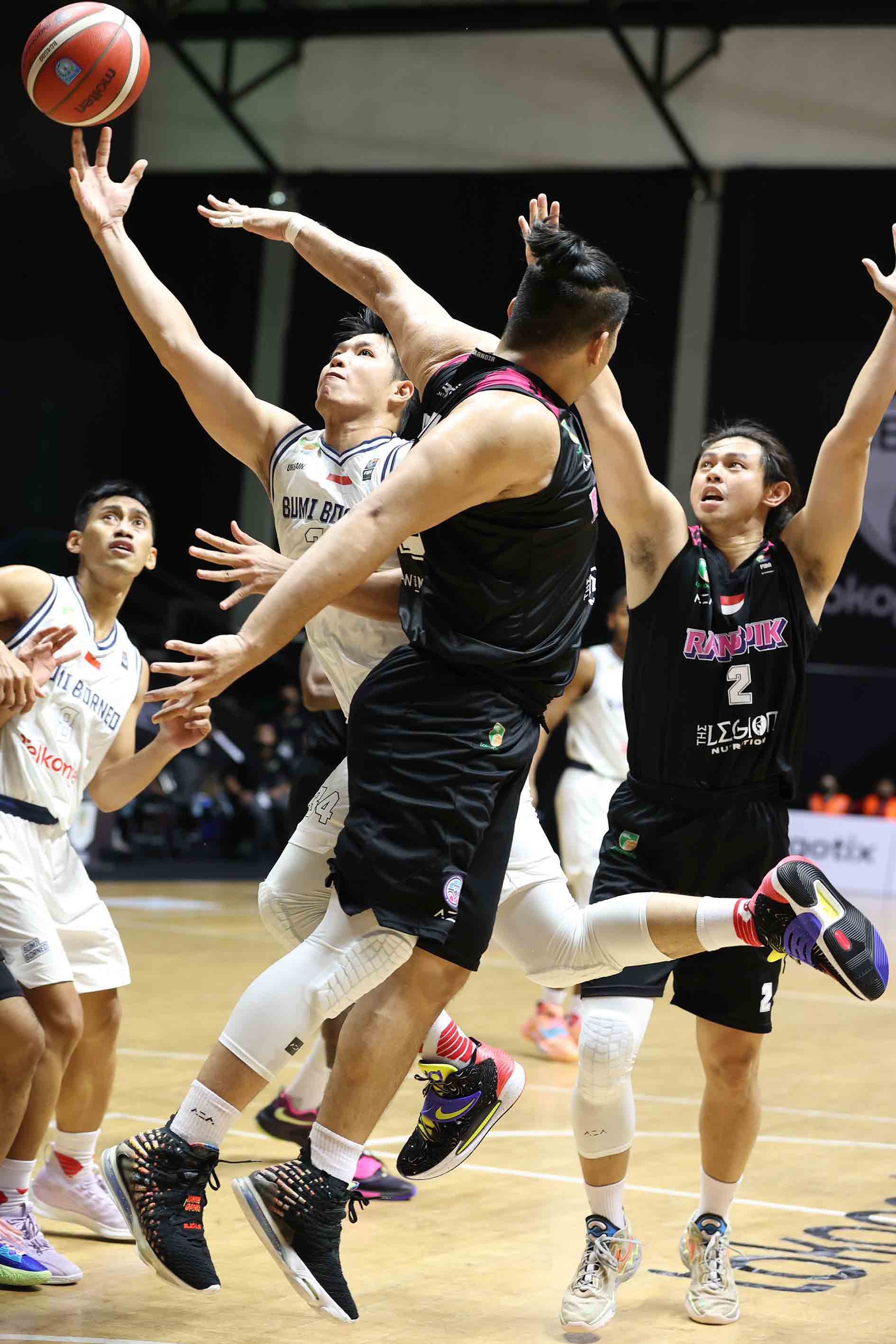 Julius Caesar Wongso (34) pemain Bumi Borneo Basketball Pontianak melempar bola ke arah ring lawan. Bumi Borneo Basketball Pontianak melawan Rans PIK Basketball Club pada pertandingan Seri 1 Jakarta Indonesian Basketball League (IBL) 2022 di Hall Basket GBK, Jakarta, Jum’at (21/1/2022). Bumi Borneo Basketball Pontianak kalah oleh Rans PIK Basketball Club dengan skor 65-70. (Photo : Bobby Arifin)