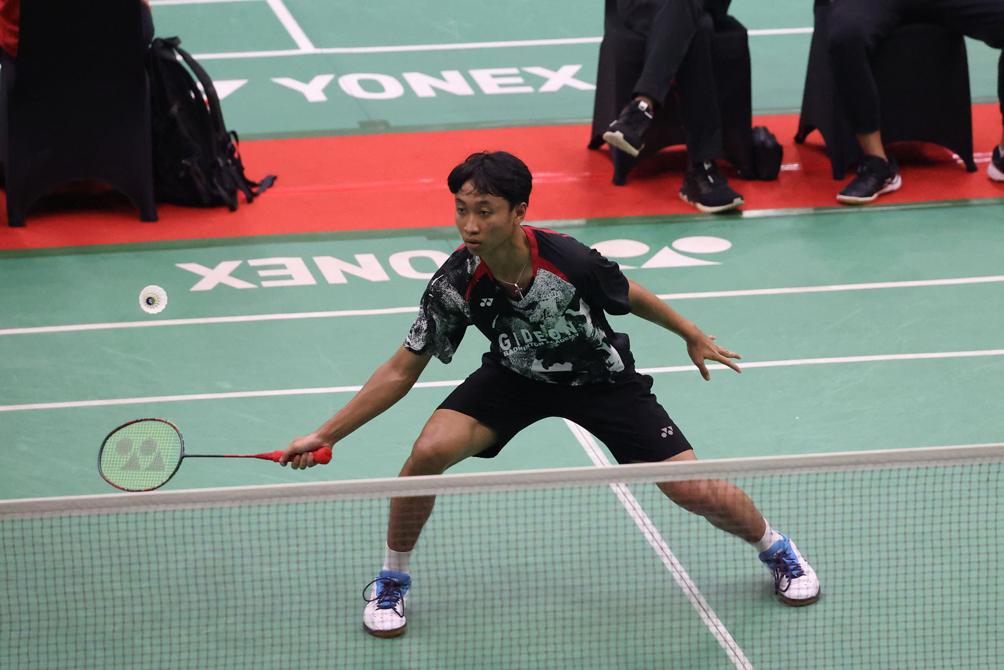 Adriel Ferdinand Leonardo pada laga perdana gelaran YONEX Sunrise Pembangunan Jaya Raya Junior International Grand Prix 2024 yang berlangsung di GOR PB Jaya Raya Bintaro, Selasa (9/7).