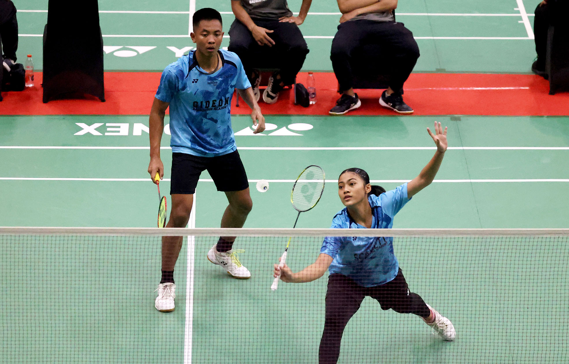 M. Nawaf Khoiriyansyah/Luna Rianty Saffana pada gelaran YONEX Sunrise Pembangunan Jaya Raya Junior International Grand Prix 2024 yang berlangsung di GOR PB Jaya Raya Bintaro, Rabu (10/7).