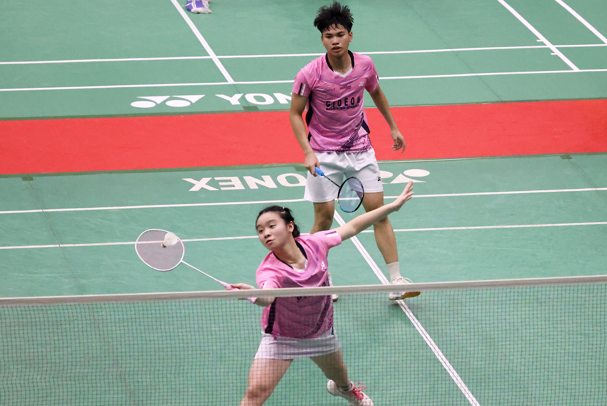 Kevin Ferdian Santoso/Cateline Yonathan pada gelaran YONEX Sunrise Pembangunan Jaya Raya Junior International Grand Prix 2024 yang berlangsung di GOR PB Jaya Raya Bintaro, Rabu (10/7).