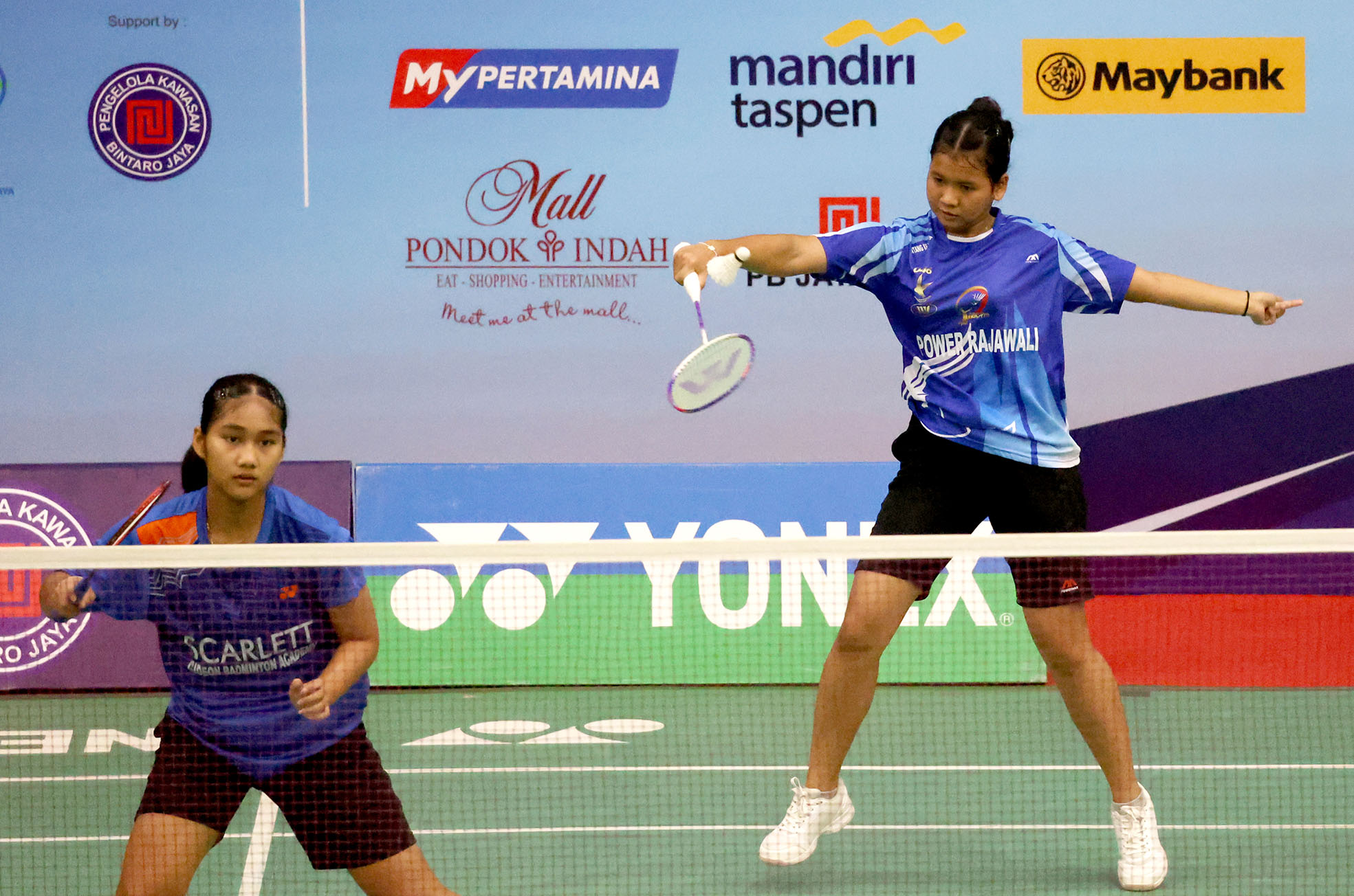 Muthiya Rahma Haryanti/Citra Dwi Lestari pada gelaran YONEX Sunrise Pembangunan Jaya Raya Junior International Grand Prix 2024 yang berlangsung di GOR PB Jaya Raya Bintaro, Rabu (10/7).