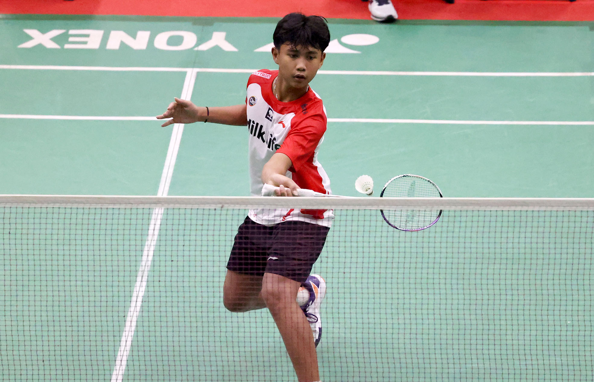 Muhamad Derajat Maulana pada gelaran YONEX Sunrise Pembangunan Jaya Raya Junior International Grand Prix 2024 yang berlangsung di GOR PB Jaya Raya Bintaro, Kamis (11/7).