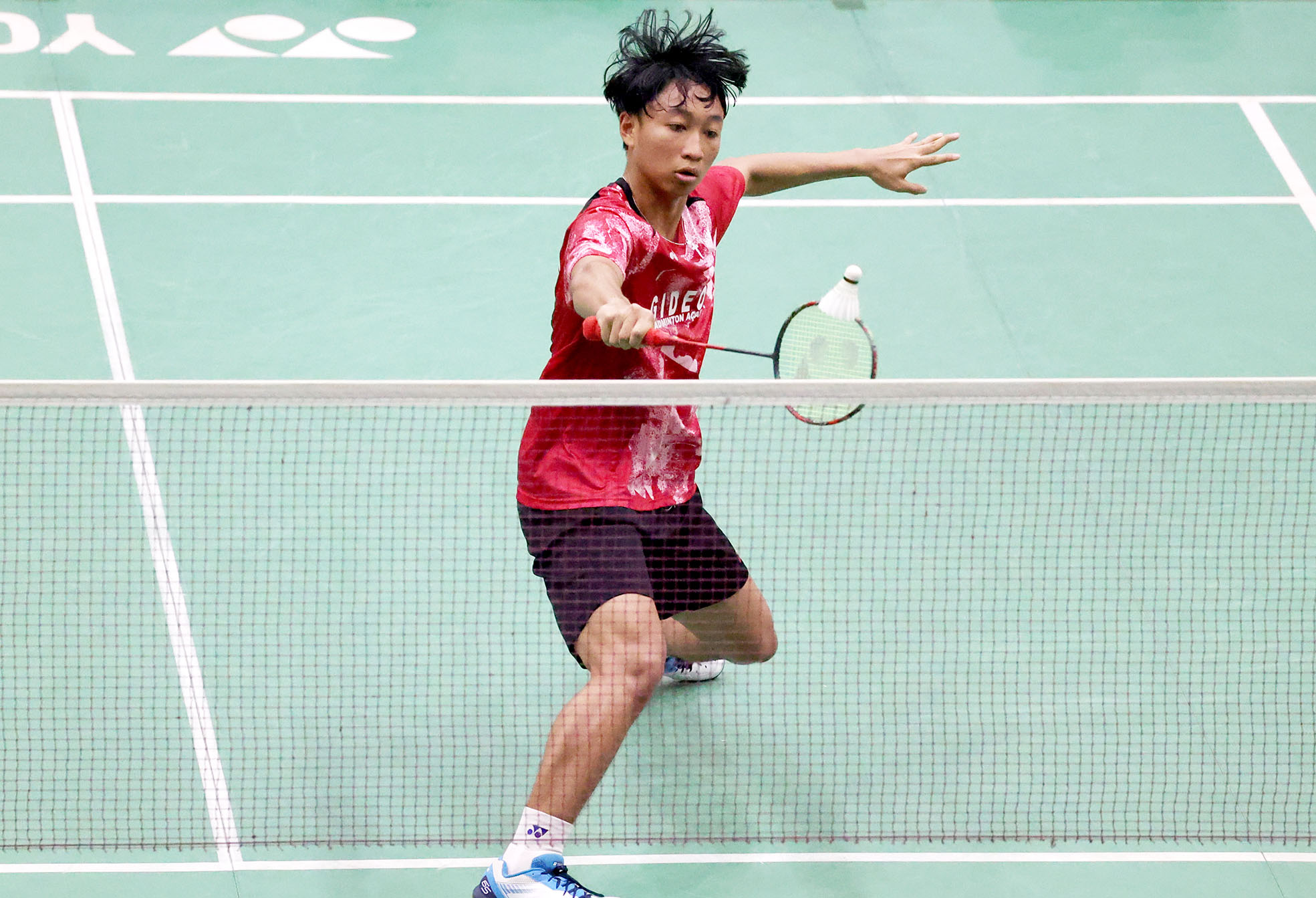 Adriel Ferdinand Leonardo pada gelaran YONEX Sunrise Pembangunan Jaya Raya Junior International Grand Prix 2024 yang berlangsung di GOR PB Jaya Raya Bintaro, Kamis (11/7).