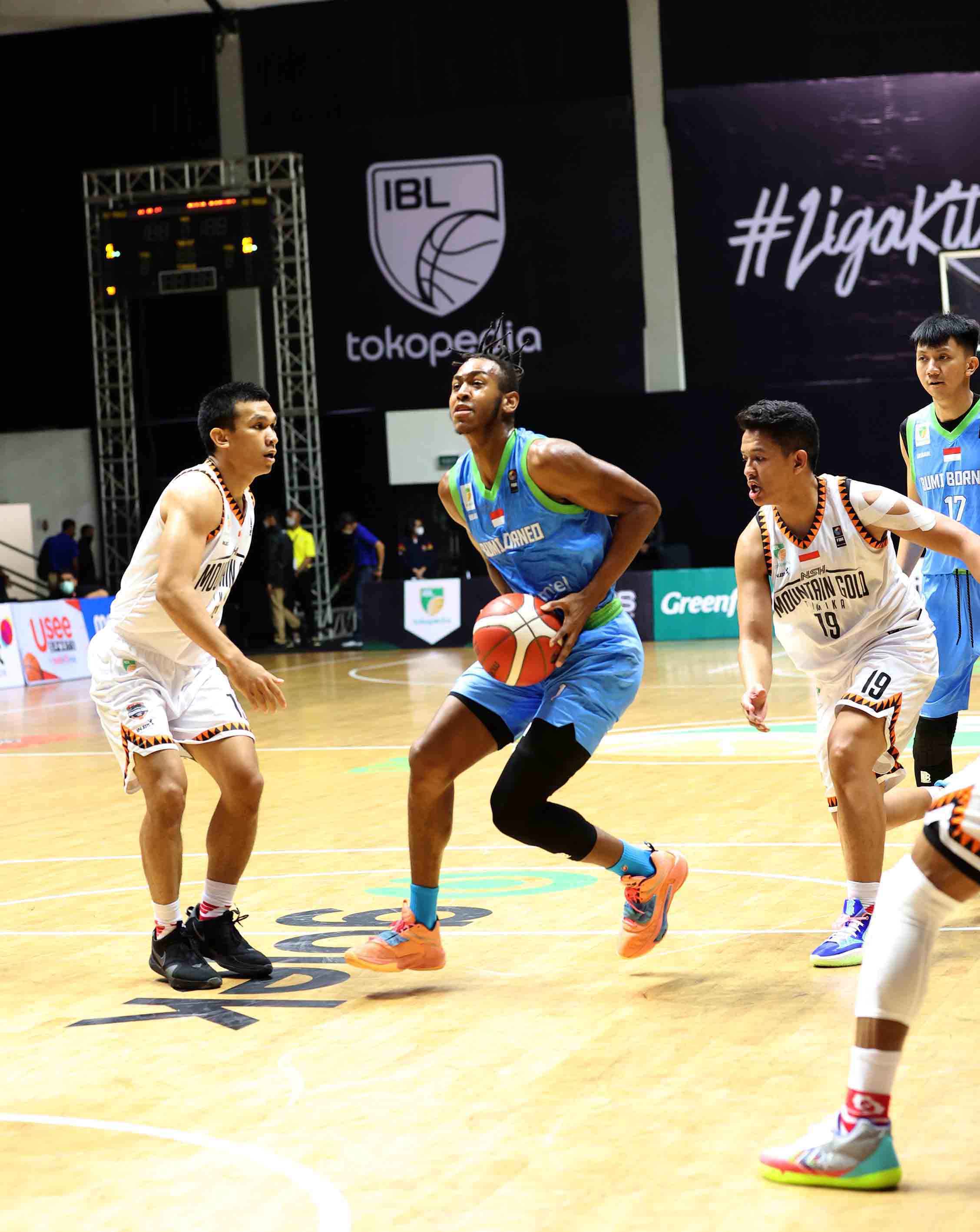 Randy Bell (1) pemain Bumi Borneo Basketball Pontianak bersiap melempar bola ke arah ring lawan. Bumi Borneo Basketball Pontianak melawan NSH Mountain Gold Timika pada pertandingan Seri 1 Jakarta Indonesian Basketball League (IBL) 2022 di Hall Basket GBK, Jakarta, Sabtu (15/1/2022). Bumi Borneo Basketball Pontianak kalah oleh NSH Mountain Gold Timika dengan skor 60-68. (Photo : Bobby Arifin)