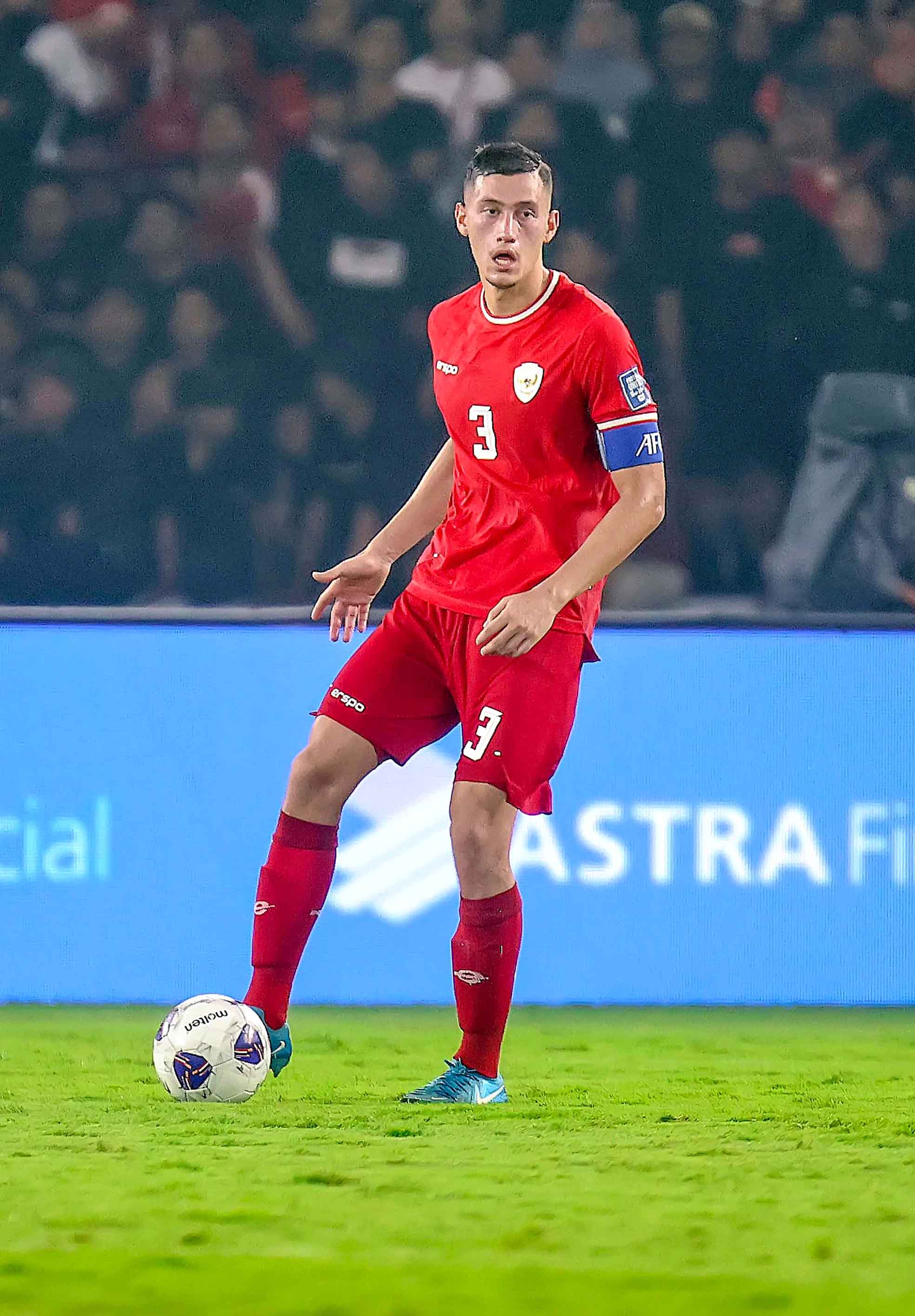 Pesepak bola Timnas Indonesia, Jay Noah Idzes (3) saat menghadapi Timnas Jepang, pada lanjutan laga Grup C Babak Ketiga Kualifikasi Piala Dunia 2026 di Stadion Utama Gelora Bung Karno (SUGBK), Senayan, Jakarta, Jumat (15/11/2024). Timnas Indonesia kalah dari Jepang dengan skor akhir 0-4. Sportsmoment.id/Ady Sesotya