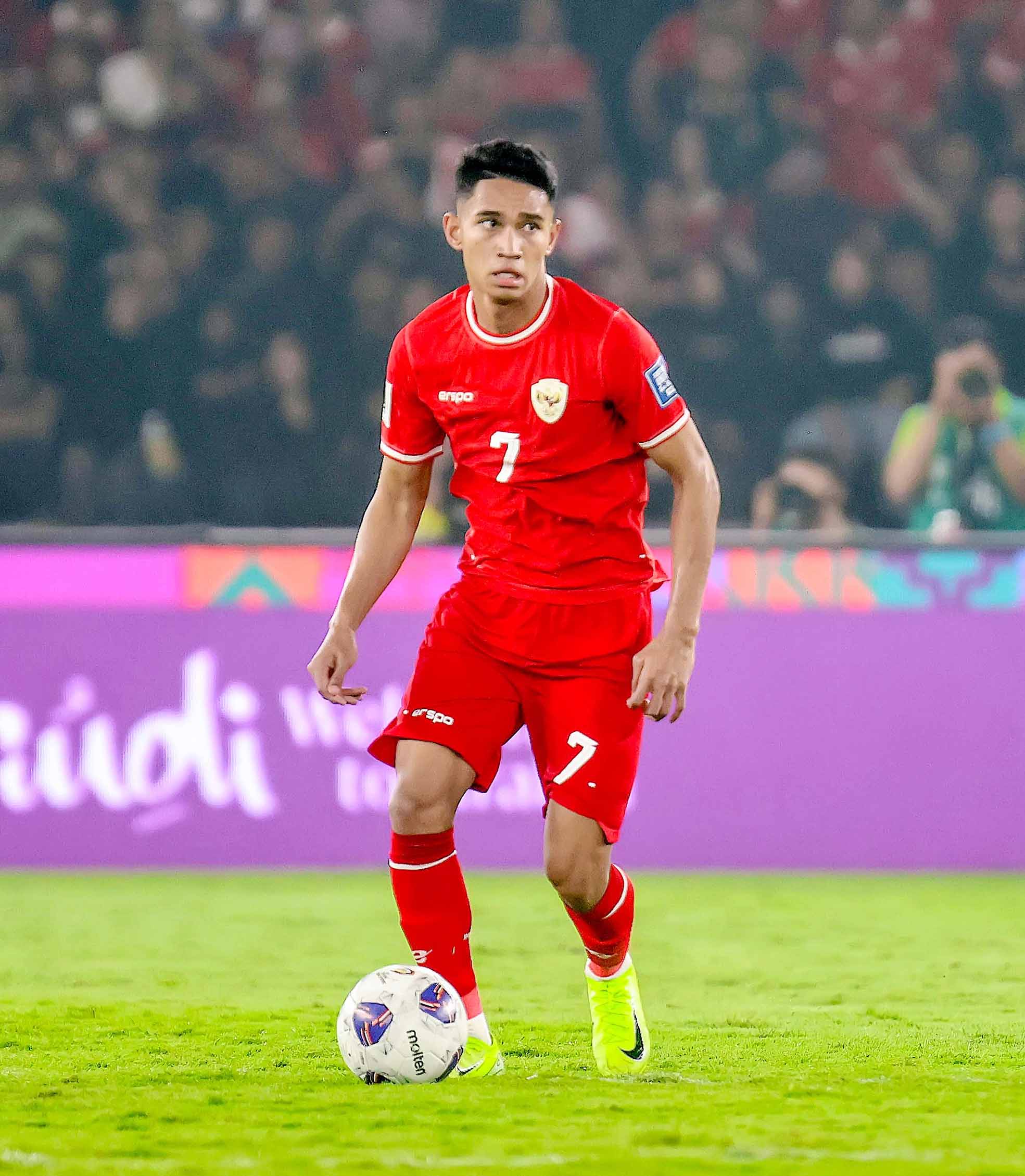 Pesepak bola Timnas Indonesia, Marselino Ferdinan (7) saat menghadapi Timnas Jepang, pada lanjutan laga Grup C Babak Ketiga Kualifikasi Piala Dunia 2026 di Stadion Utama Gelora Bung Karno (SUGBK), Senayan, Jakarta, Jumat (15/11/2024). Timnas Indonesia kalah dari Jepang dengan skor akhir 0-4. Sportsmoment.id/Ady Sesotya